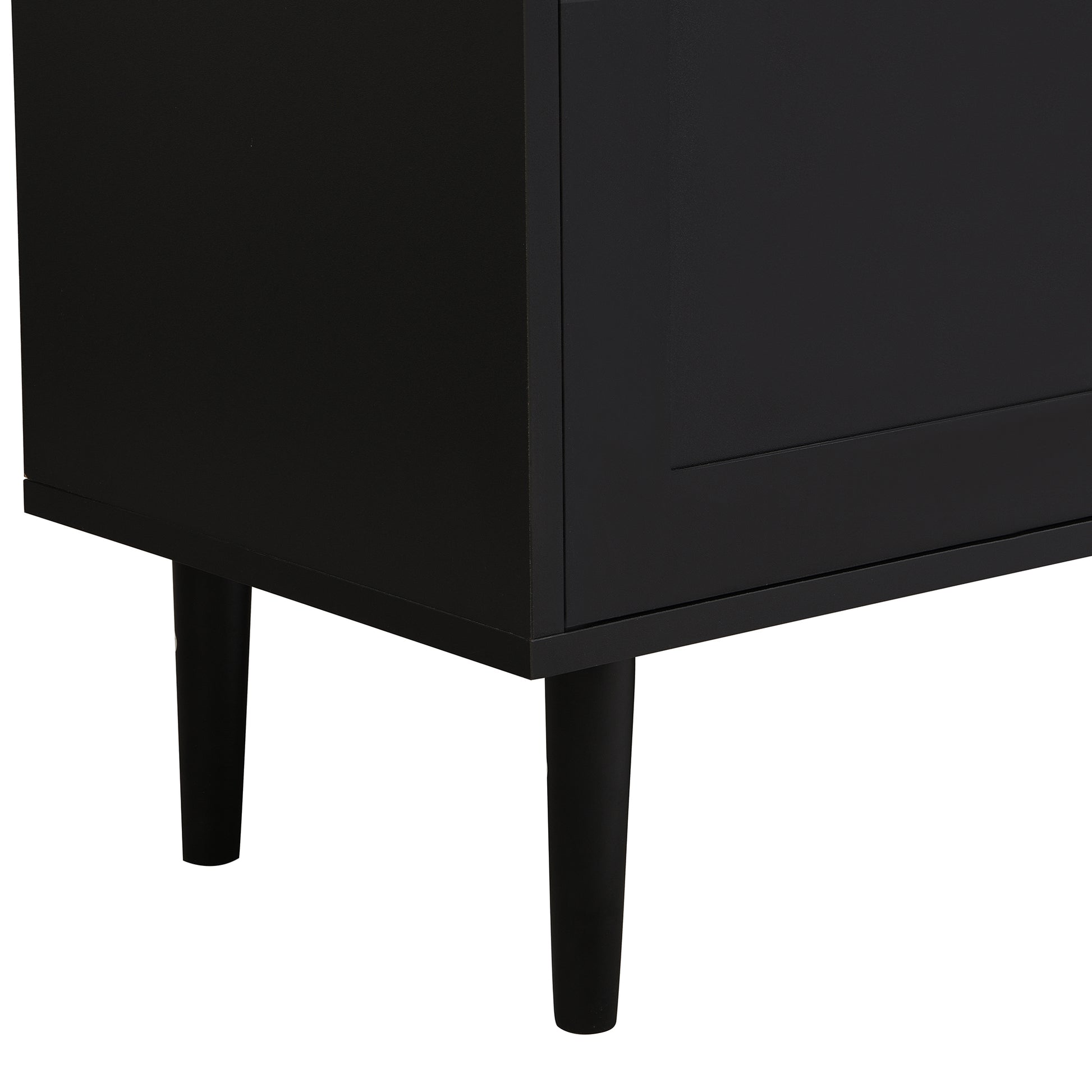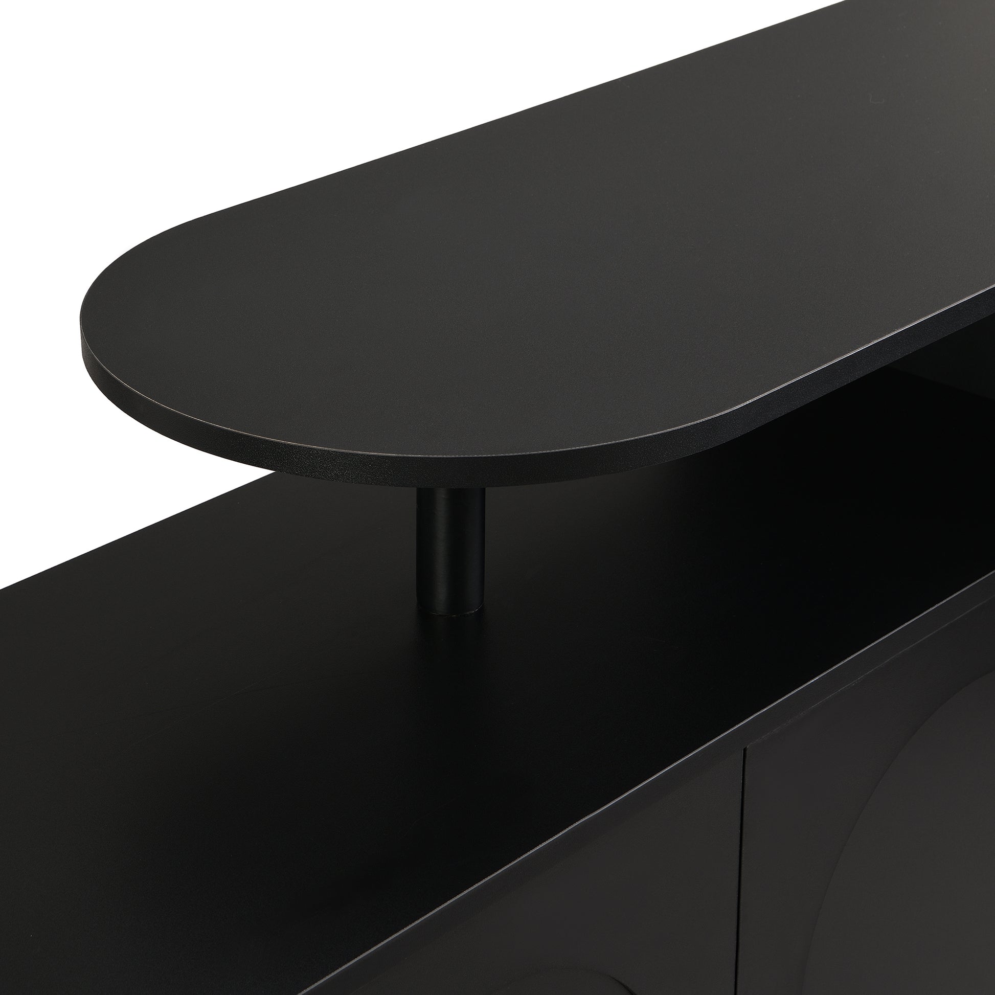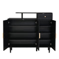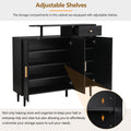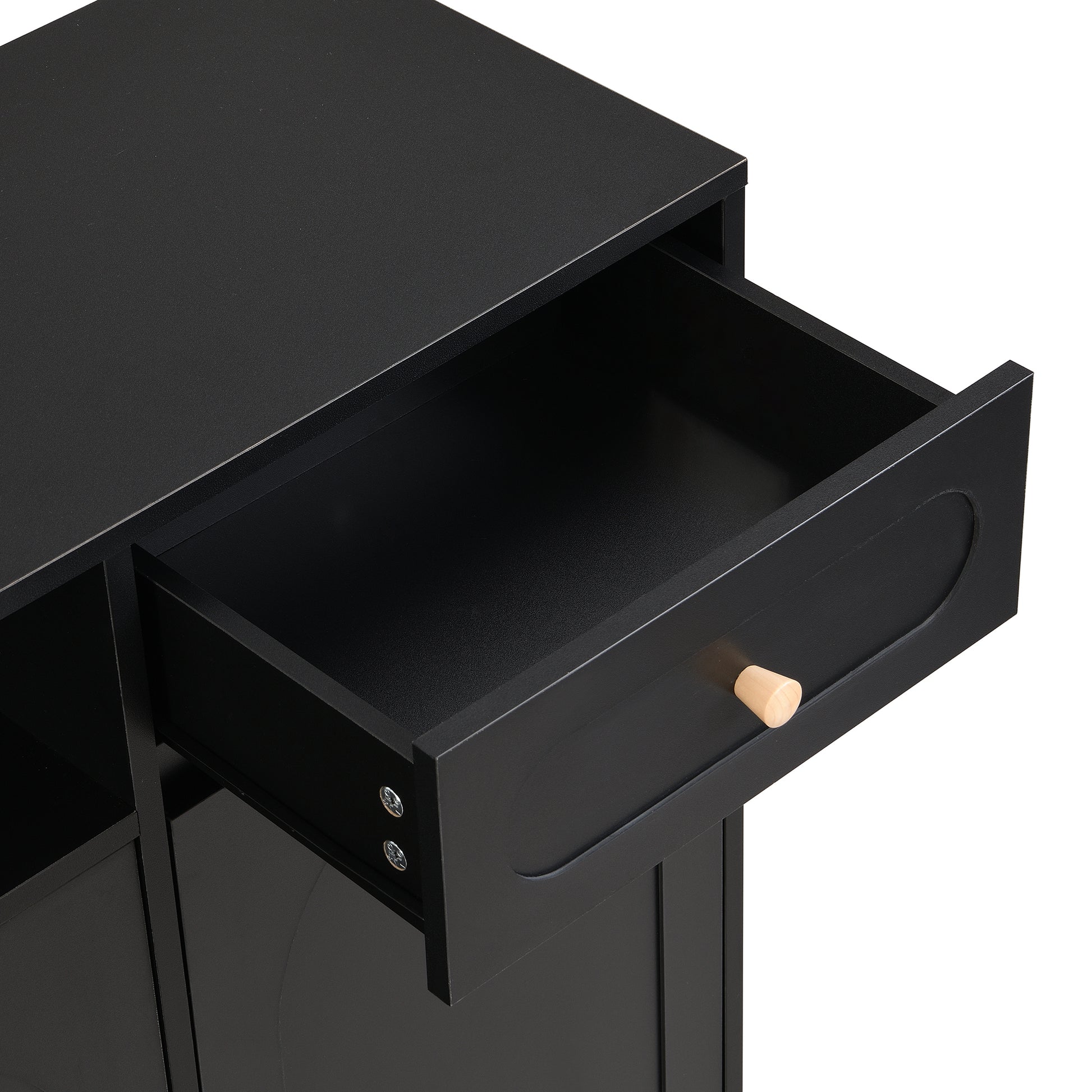 Elegant Shoe Cabinet With Arched Doors And Drawer, Cream Style Storage Sideboard With Adjustable Shelves And Solid Wood Legs For Entryway, Living Room, Black Freestanding 1 2 Drawers Black Primary Living Space Adjustable Shelves Particle Board Mdf