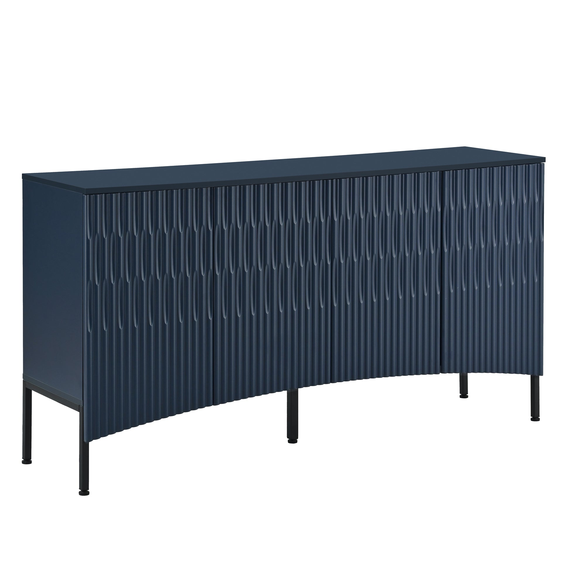 Elegant Sideboard Featuring Curved Bottom Doors With Arched Groove Design In A Stylish Four Door Layout,Suitable For Living Rooms,Entrance And Study Navy Blue Primary Living Space American Design Mdf