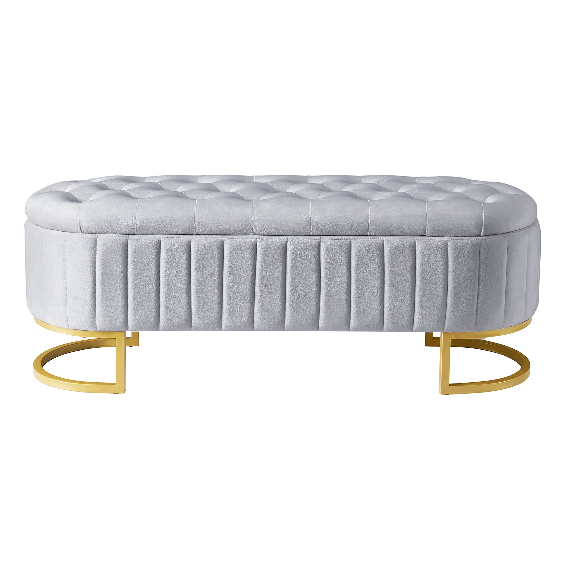 Elegant Upholstered Velvet Storage Ottoman With Button Tufted,Storage Bench With Metal Legs For Bedroom,Living Room,Fully Assembled Except Legs,Grey Grey Velvet
