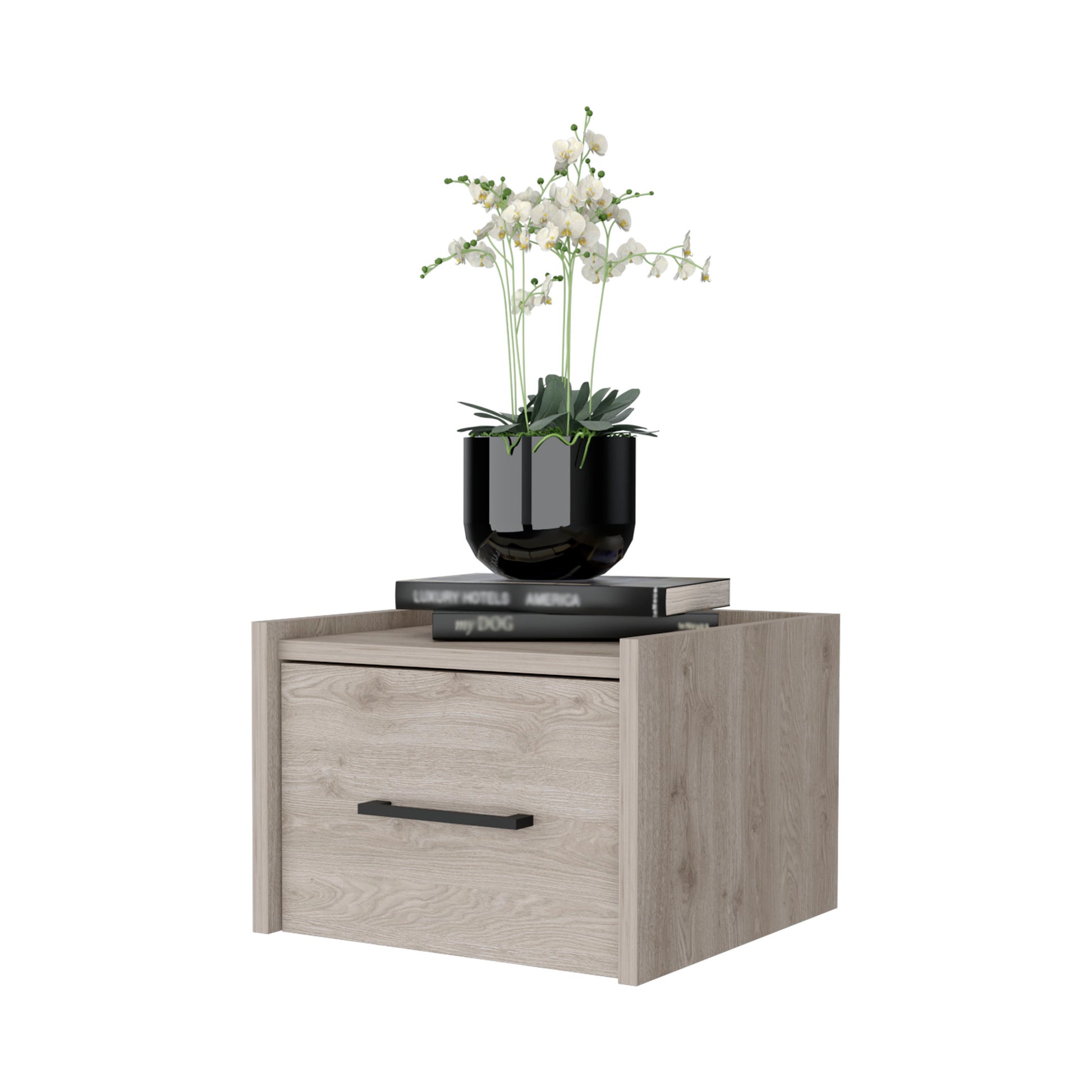 Elfrida Wall Mounted Nightstand, Sleek Single Drawer Design With Spacious Top Shelf Gray 1 Drawer Bedroom Bedside Cabinet Contemporary Storage Melamine Engineered Wood