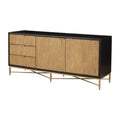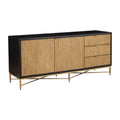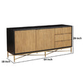Eli 64 Inch Tv Media Entertainment Center Console, 3 Drawers, Black, Gold Black Brown 60 69 Inches Wood