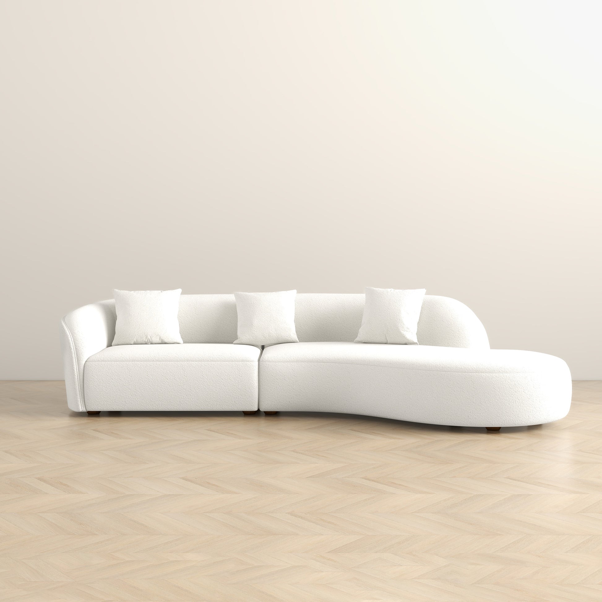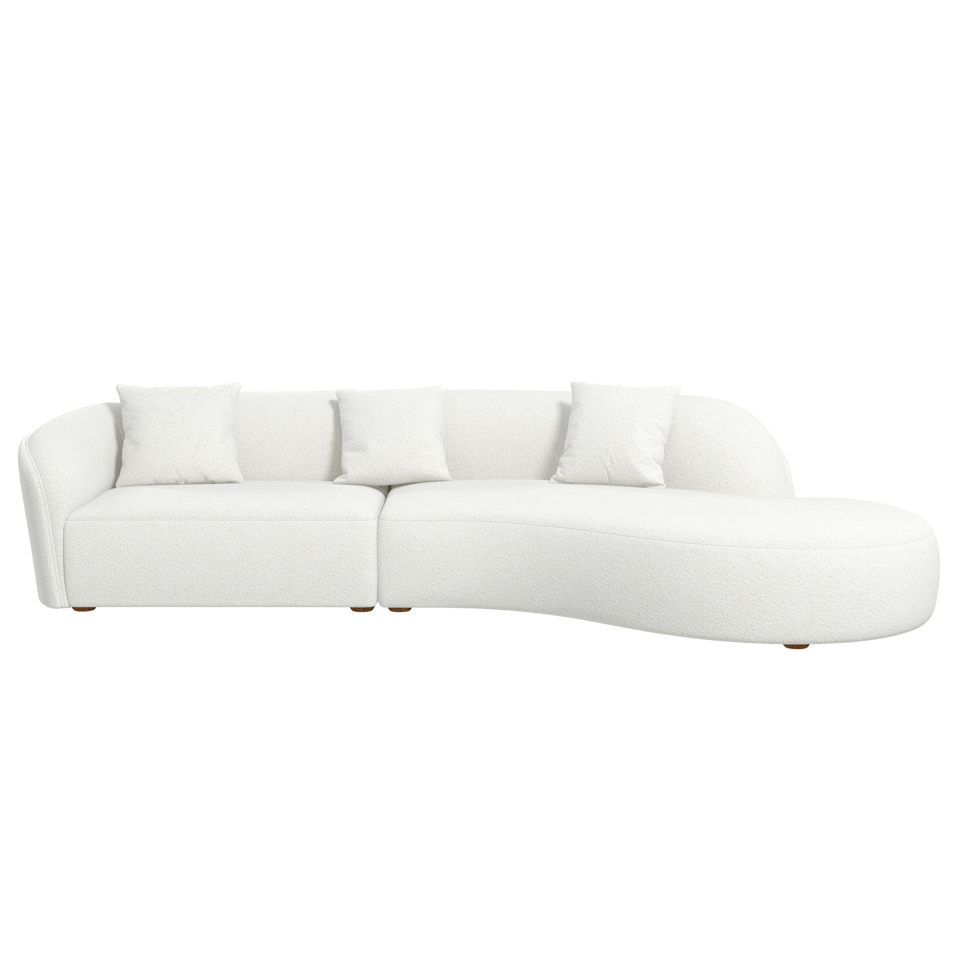 Elijah Japandi Style Curvy Sectional Sofa 133" Ivory Wood Foam Boucle,Wood Fabric 4 Seat