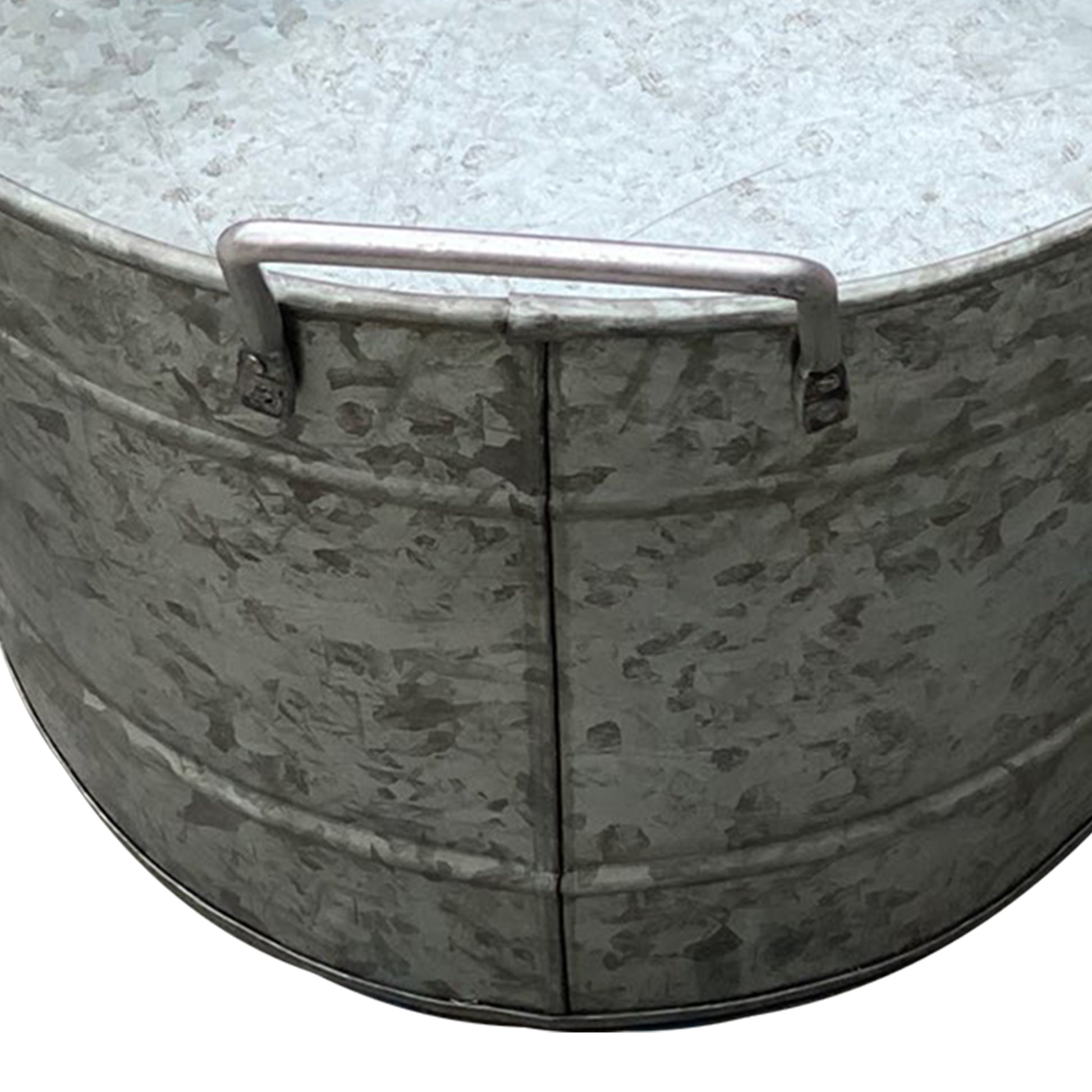 Embossed Design Oval Shape Galvanized Steel Tub With Side Handles, Large, Silver Antique Silver Steel