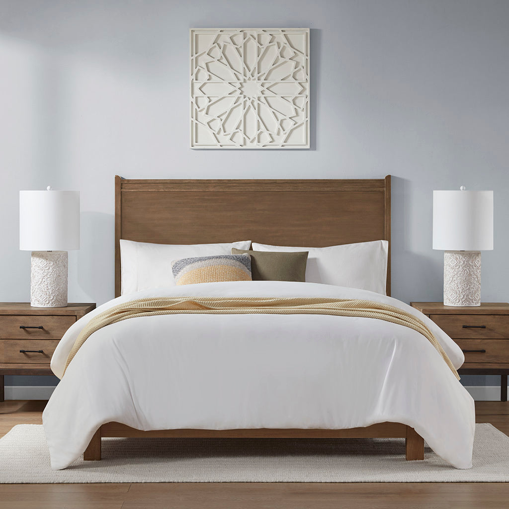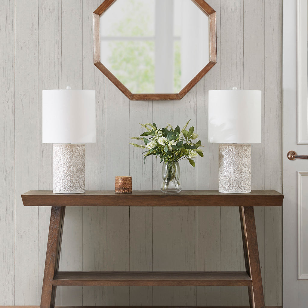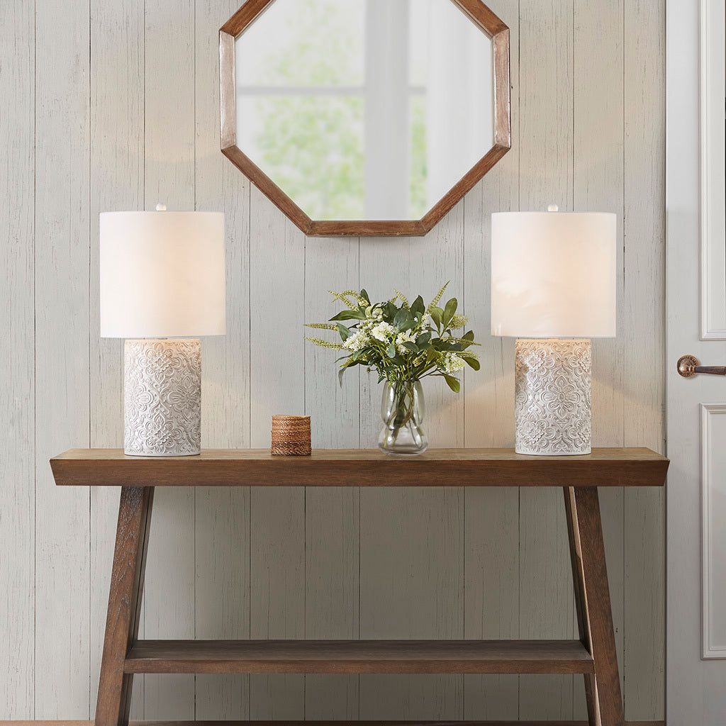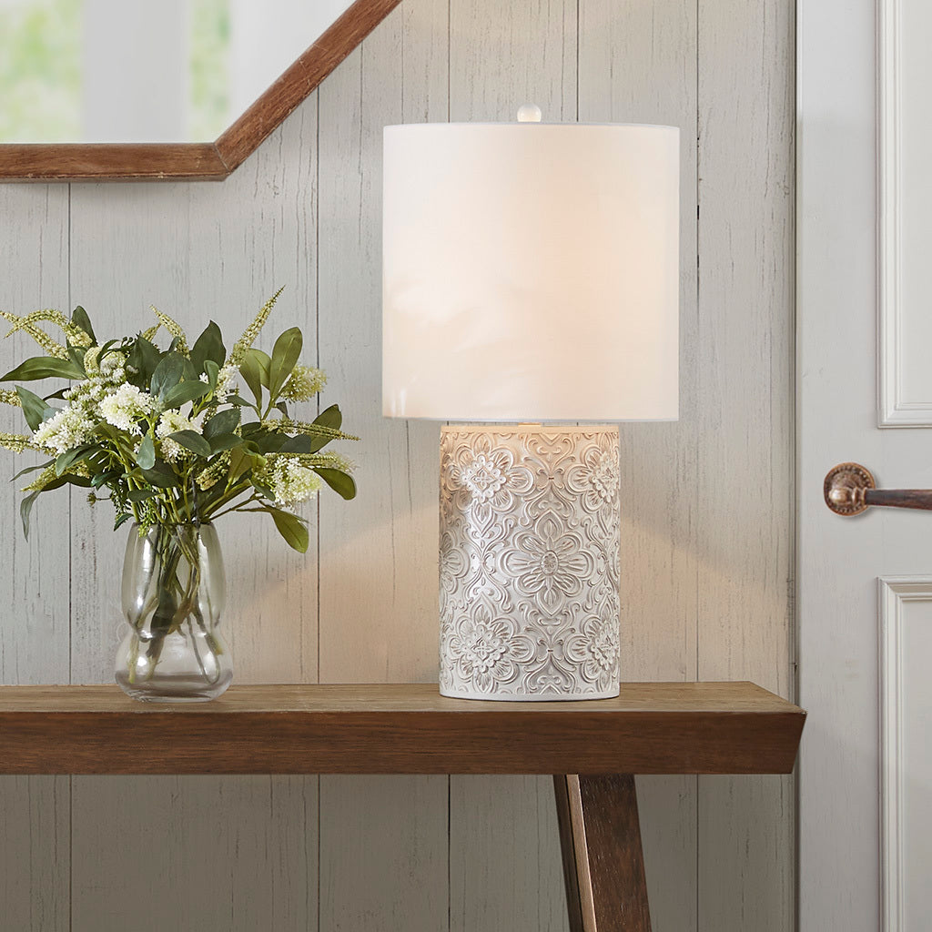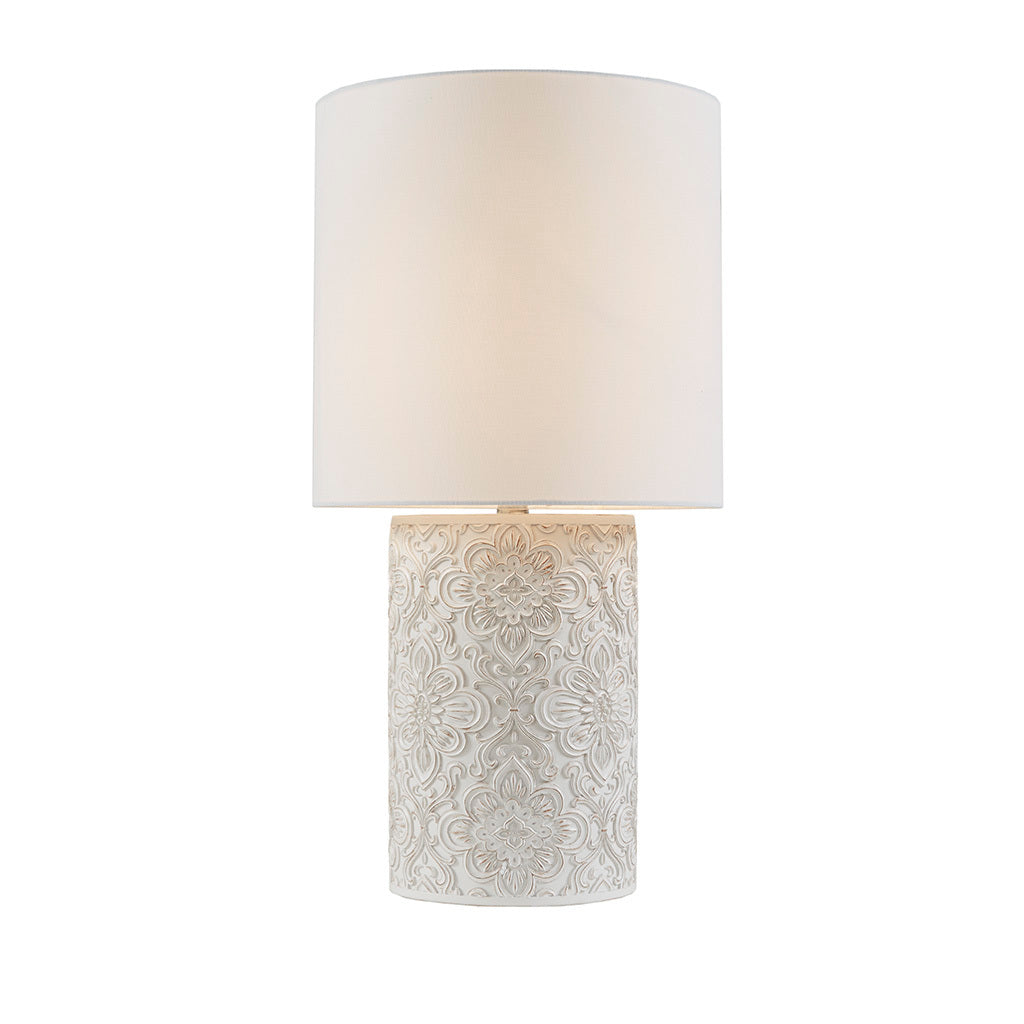 Embossed Floral Resin Table Lamp Ivory Cotton