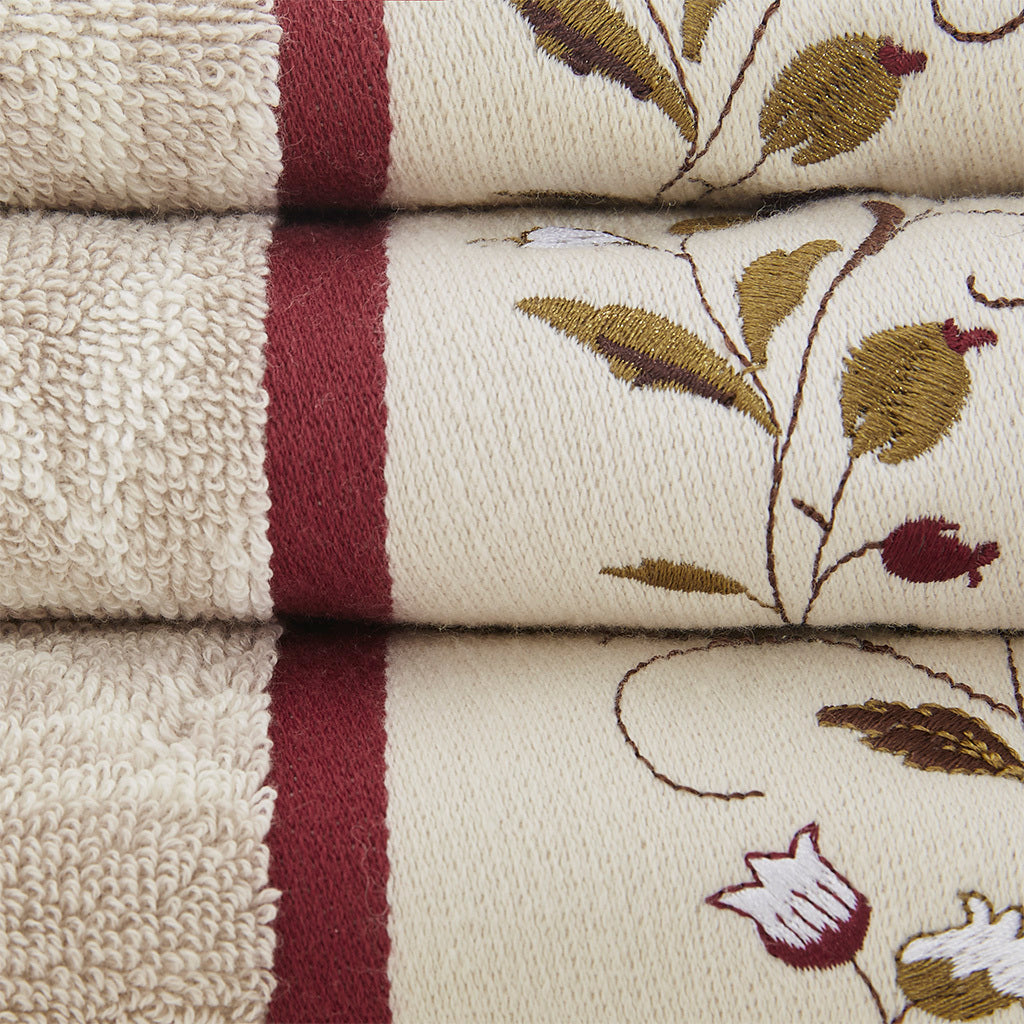 Embroidered Cotton Jacquard 6 Piece Towel Set Red Cotton
