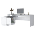 Emery L Shaped 70" Wide Desk With One Cabinet And Two Open Shelves White Desk Top Office Modern Freestanding Rectangular Open Storage Coffee & End Tables Rectangular Particle Board