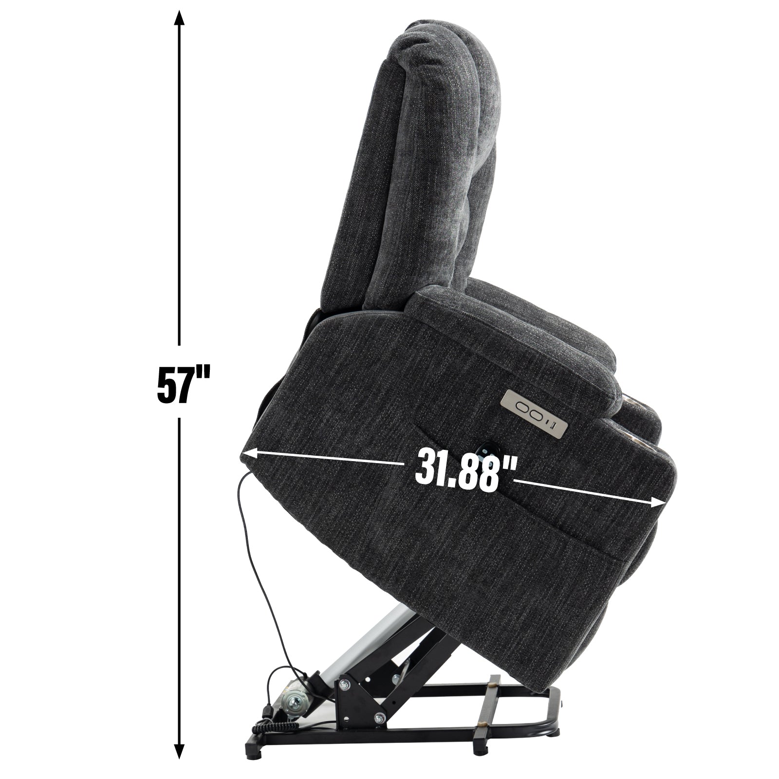 Emon'S Large Power Lift Recliner Chair With Massage And Heat For Elderly, Overstuffed Wide Recliners, Heavy Duty Motion Mechanism With Usb And Type C Ports, 2 Steel Cup Holders, Gray White Metal Primary Living Space Heavy Duty Pine Grey Chenille Power