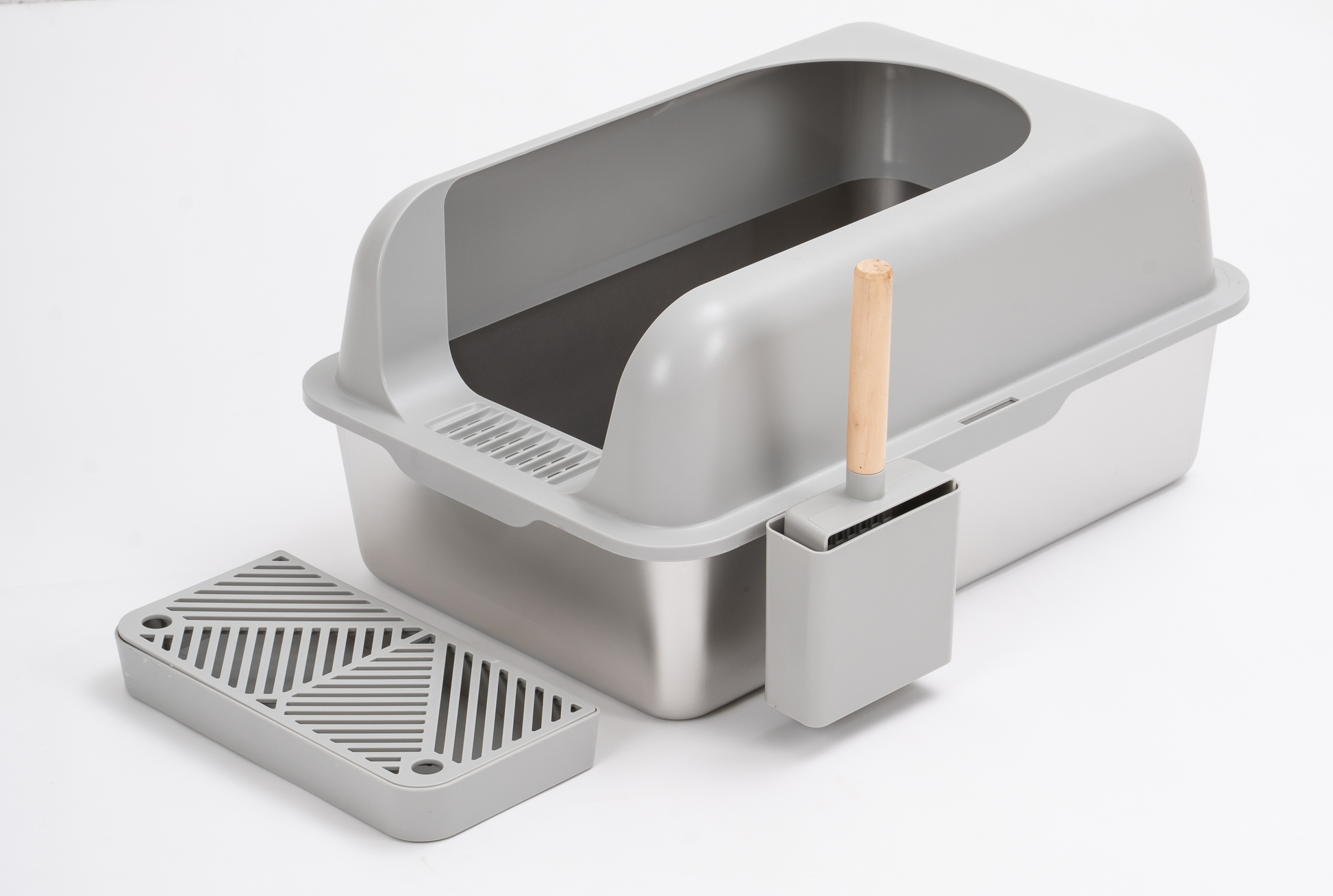 Enclosed Stainless Steel Cat Litter Box With Lid Extra Large, Litter Box For Big Cats Xl Metal Litter Pan Tray With High Wall Sides Enclosure, Non Sticky, Anti Leakage, Easy Cleaning Grey Stainless Steel