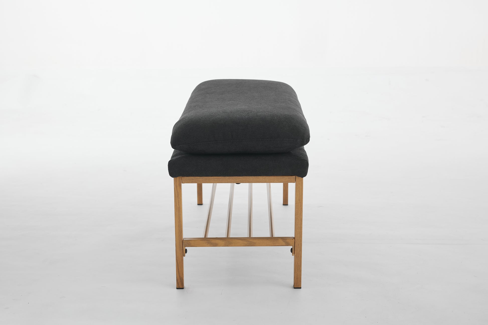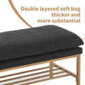 End Of Bed Bench With Shelf, Linen Upholstered Storage Shoe Bench, Modern Bedroom Bench With Metal Legs For Living Room, Entryway, Dining Room, 300 Lb, Linen Color Black Black Polyester Blend