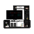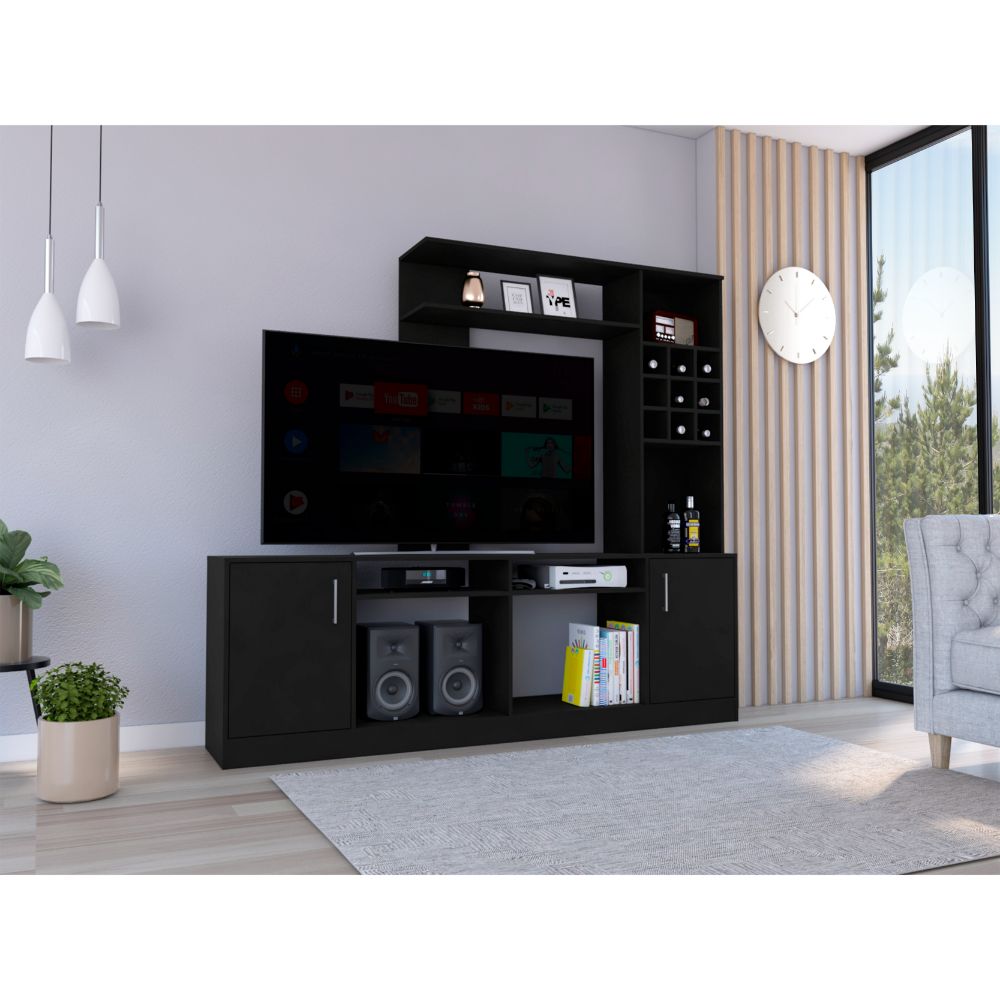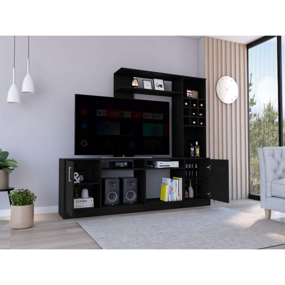 Entertainment Center For Tv S Up 78", Double Door Cabinet, Storage Spaces, Six External Shelves, Black Black 60 69 Inches Solid Wood Mdf Engineered Wood