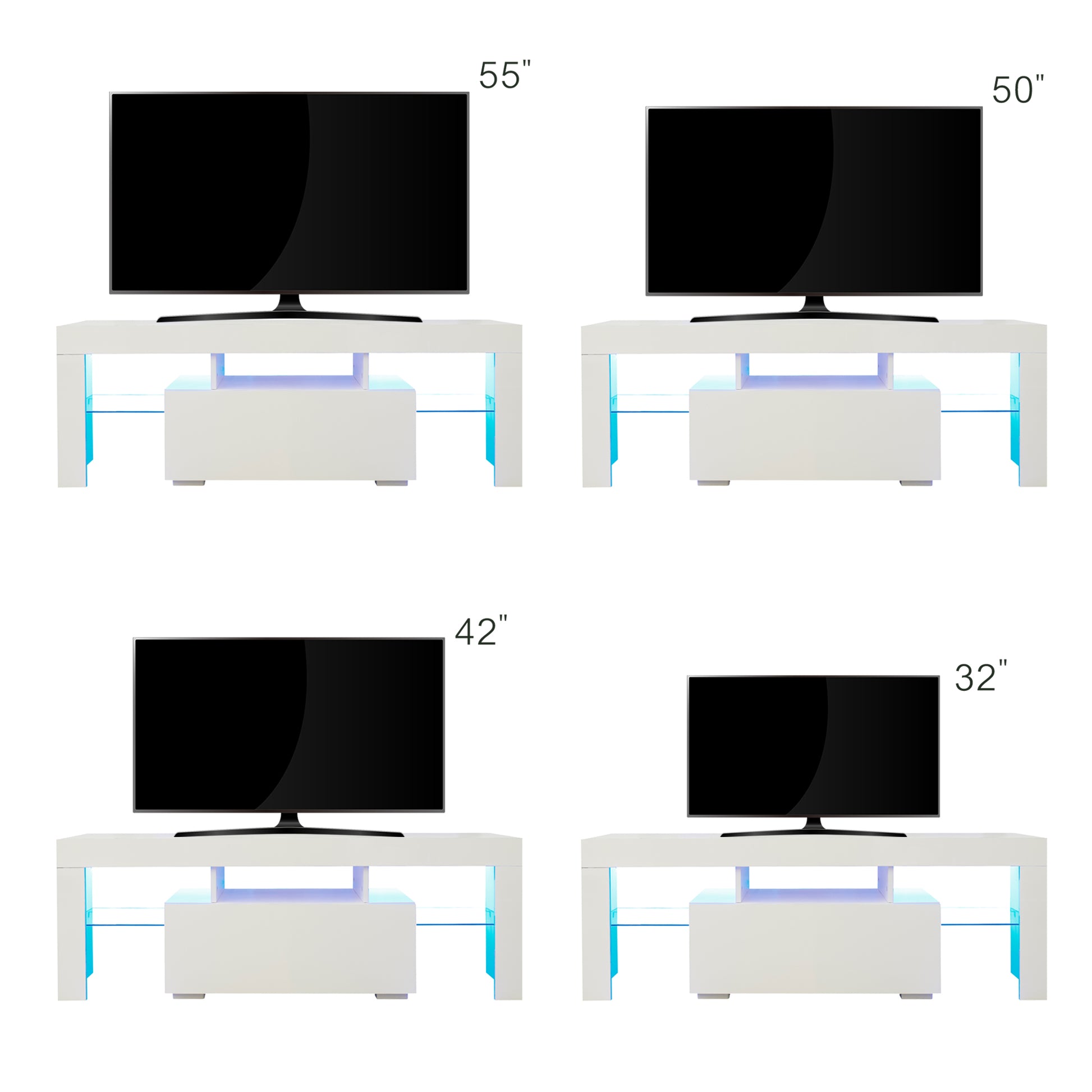 Entertainment Tv Stand, Large Tv Stand Tv Base Stand With Led Light Tv Cabinet. White 50 59 Inches Mdf