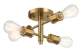 Ephemeral Four Lights Semi Flush Mount Retro Hallway Kitchen Bedroom Living Room Ceiling Pendant 11"W 6.5"H Clear,Gold,Rustic Ceiling Lights Brass,Glass
