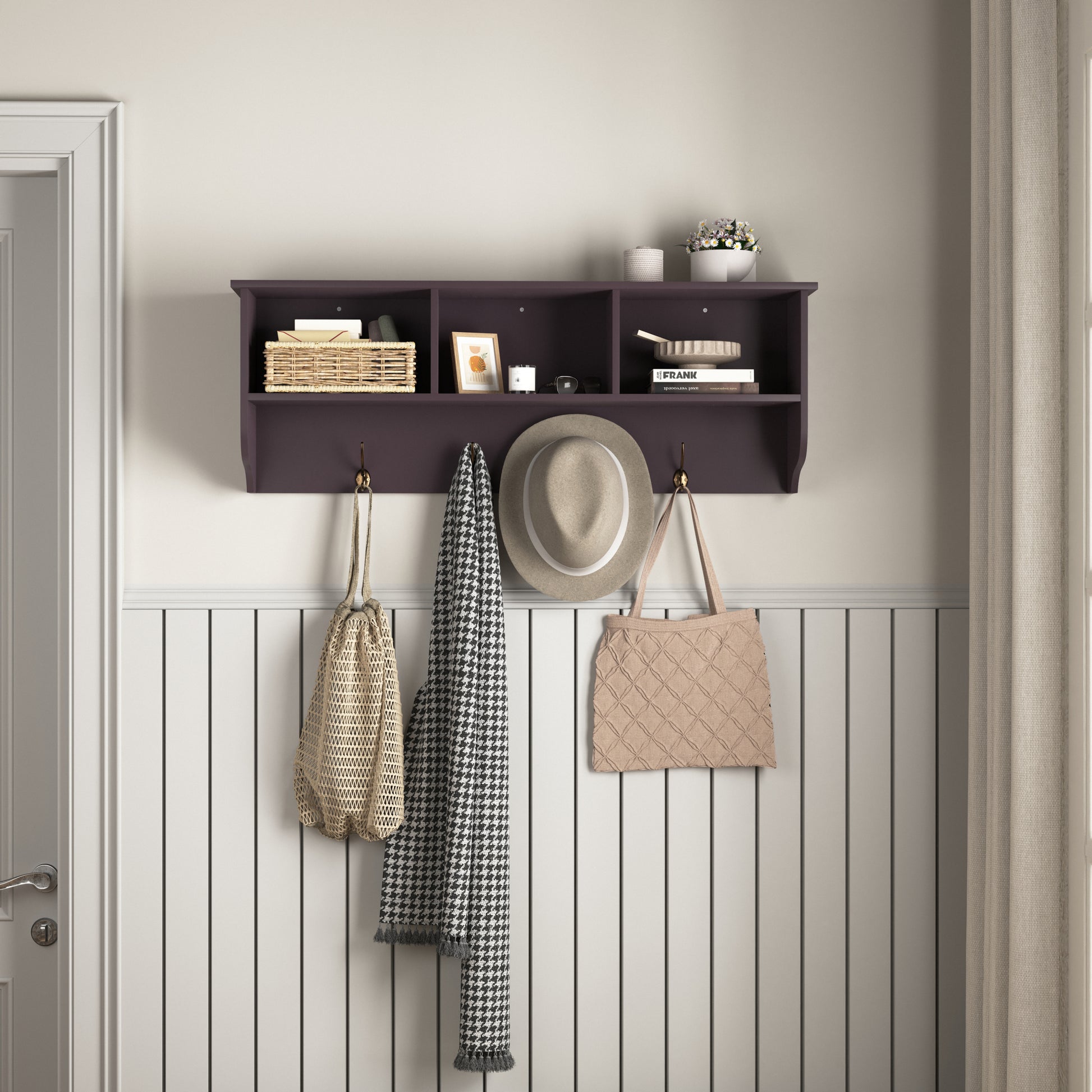 Espresso Entryway Wall Mounted Coat Rack With 4 Dual Hooks Living Room Wooden Storage Shelf Espresso Mdf