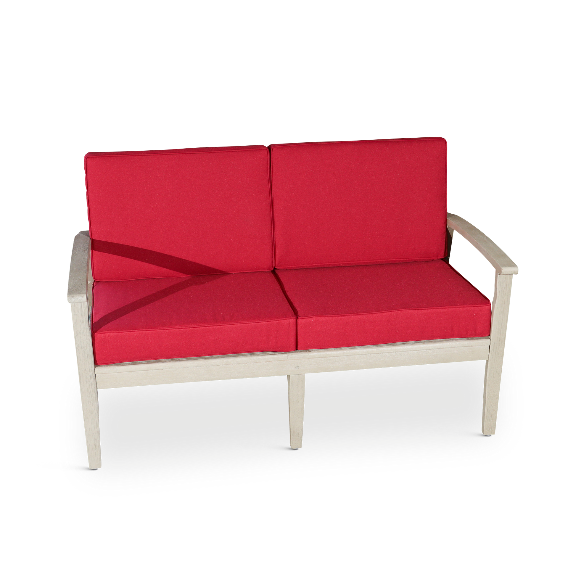 Eucalyptus Loveseat With Cushions, Driftwood Gray Finish, Burdy Cushions Gray Eucalyptus