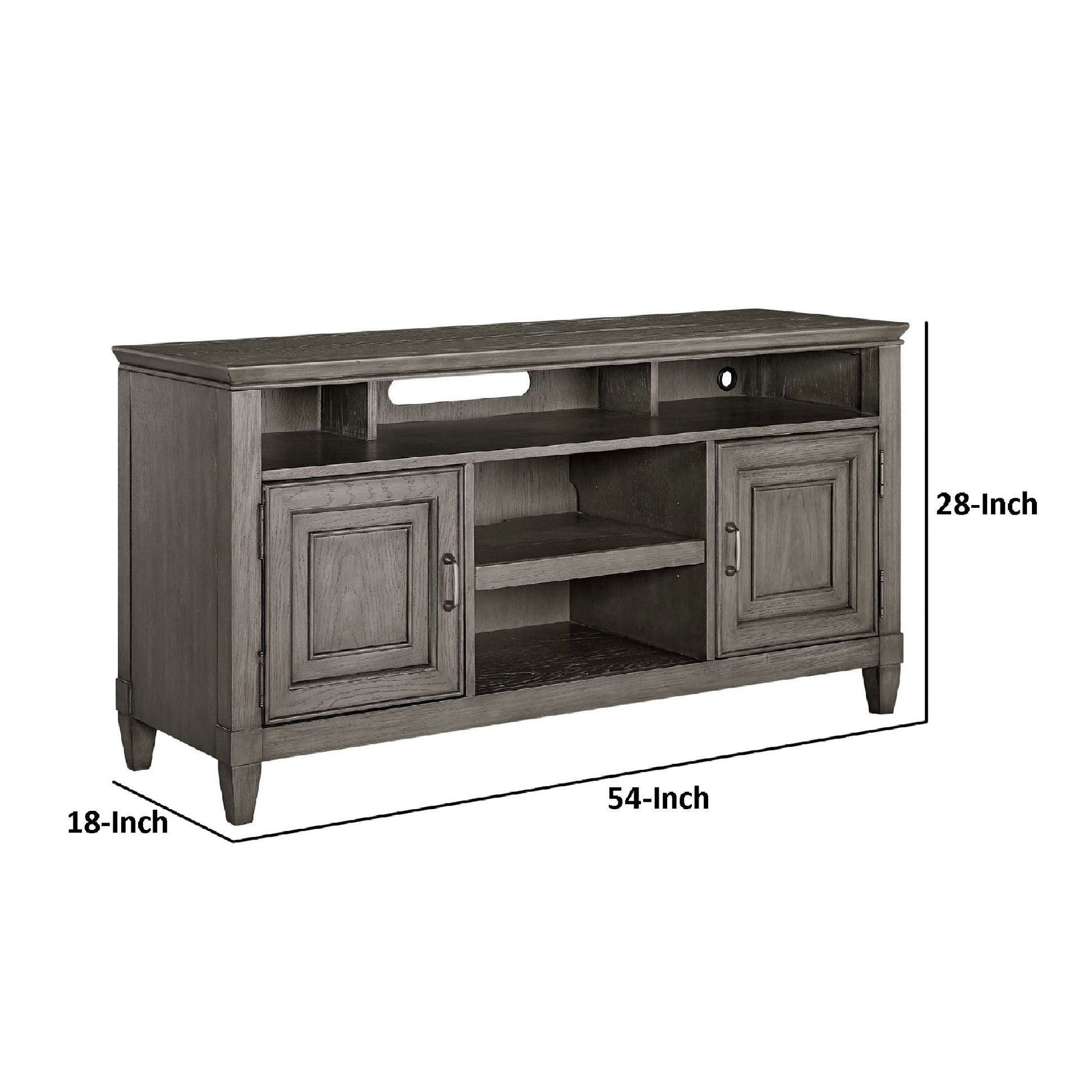 Eva 54 Inch Tv Media Entertainment Center Console, Medium, 2 Door Stone Gray Gray 50 59 Inches Wood