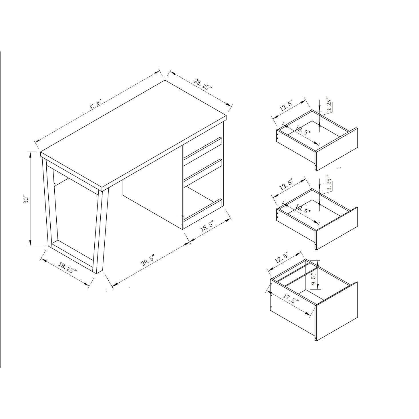 Executive Home Office Desk With Two Storage Drawers And File Cabinet Distressed Grey & Black Grey Particle Board
