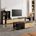 Extendable Tv Stand And Coffee Table, Set Of 2, Media Console With 3 Tier Bookshelves For Tvs Up To 110'', Dual Tone Center Table With Sliding Tabletop For Living Room, Black Black 90 Inches Or Larger Particle Board Mdf