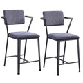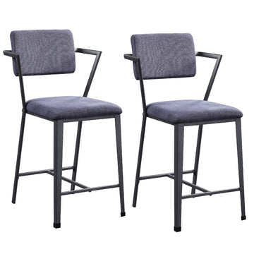 Fabric Upholstered Metal Counter Height Chair, Set Of 2,Gray And Black Gray Fabric Metal