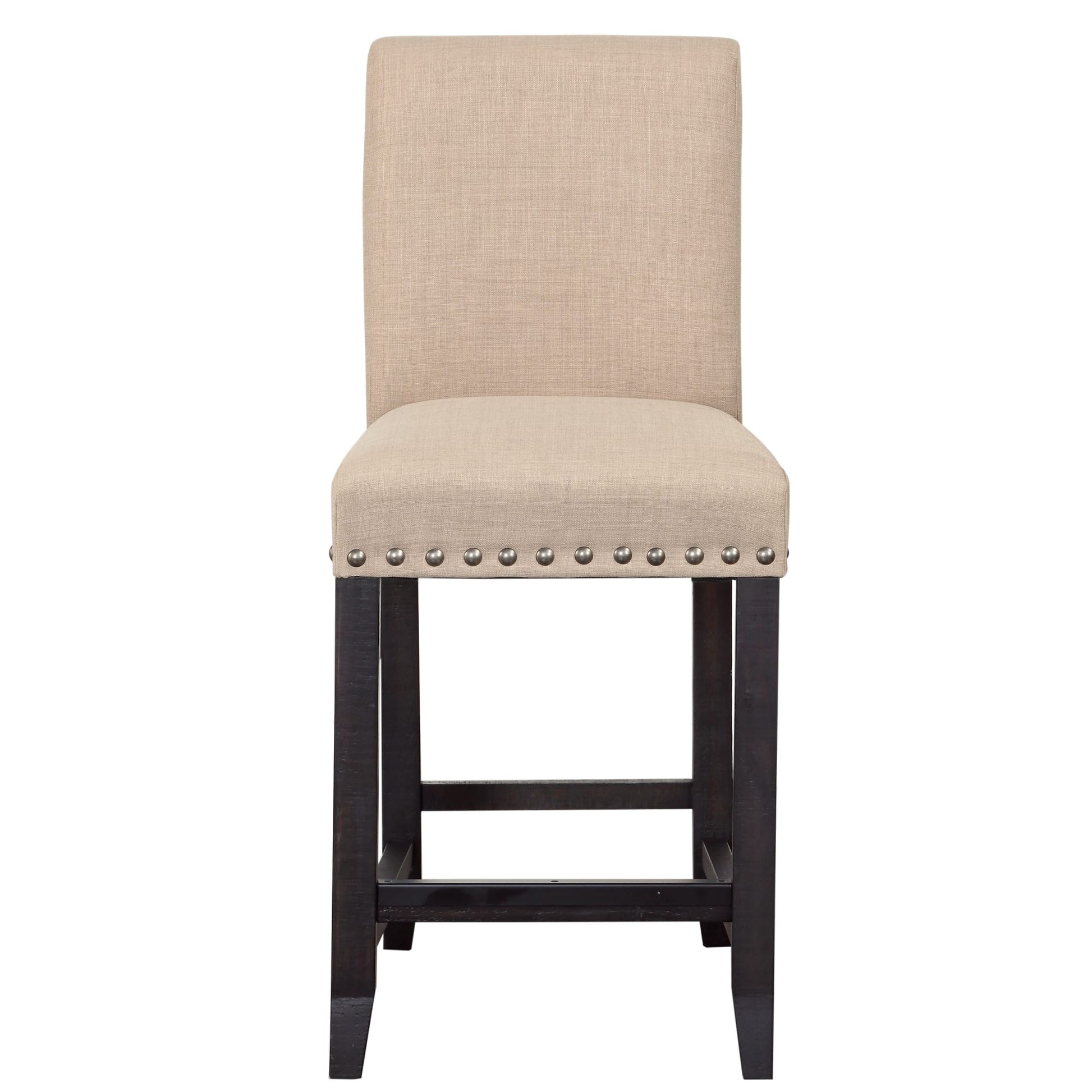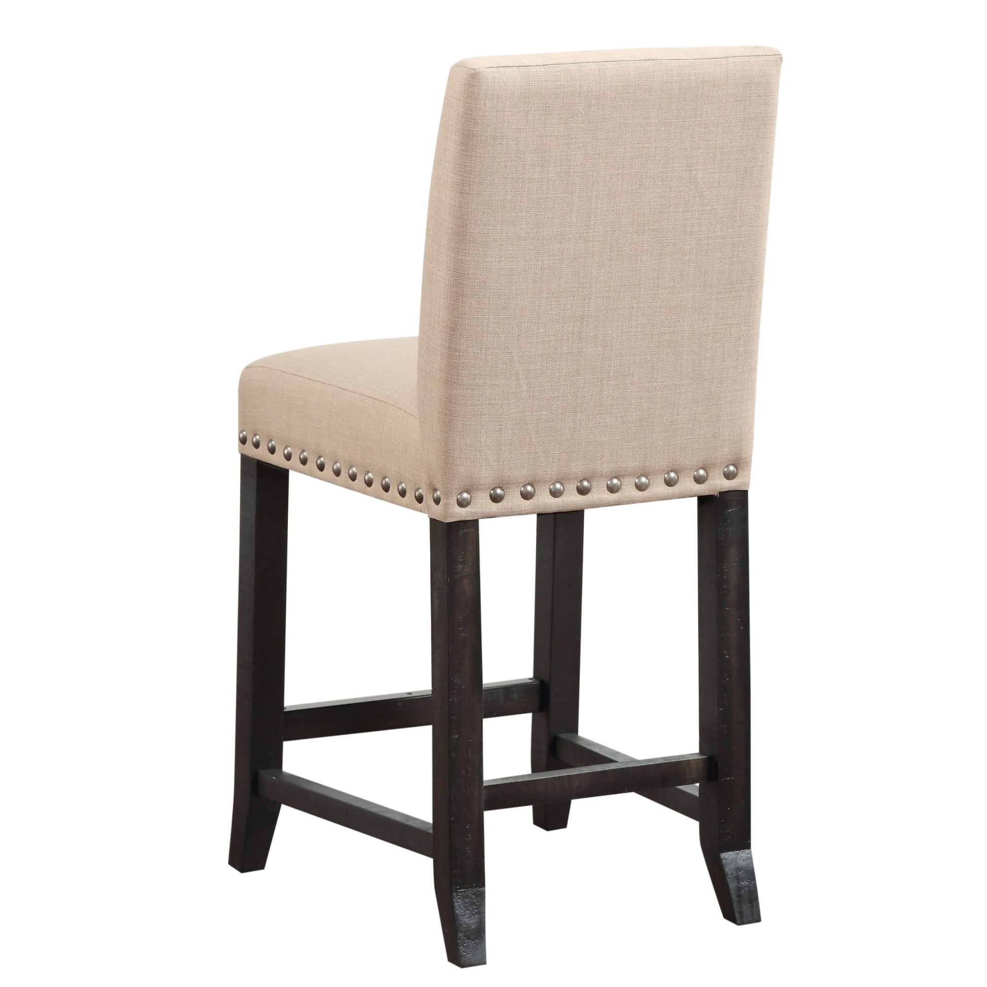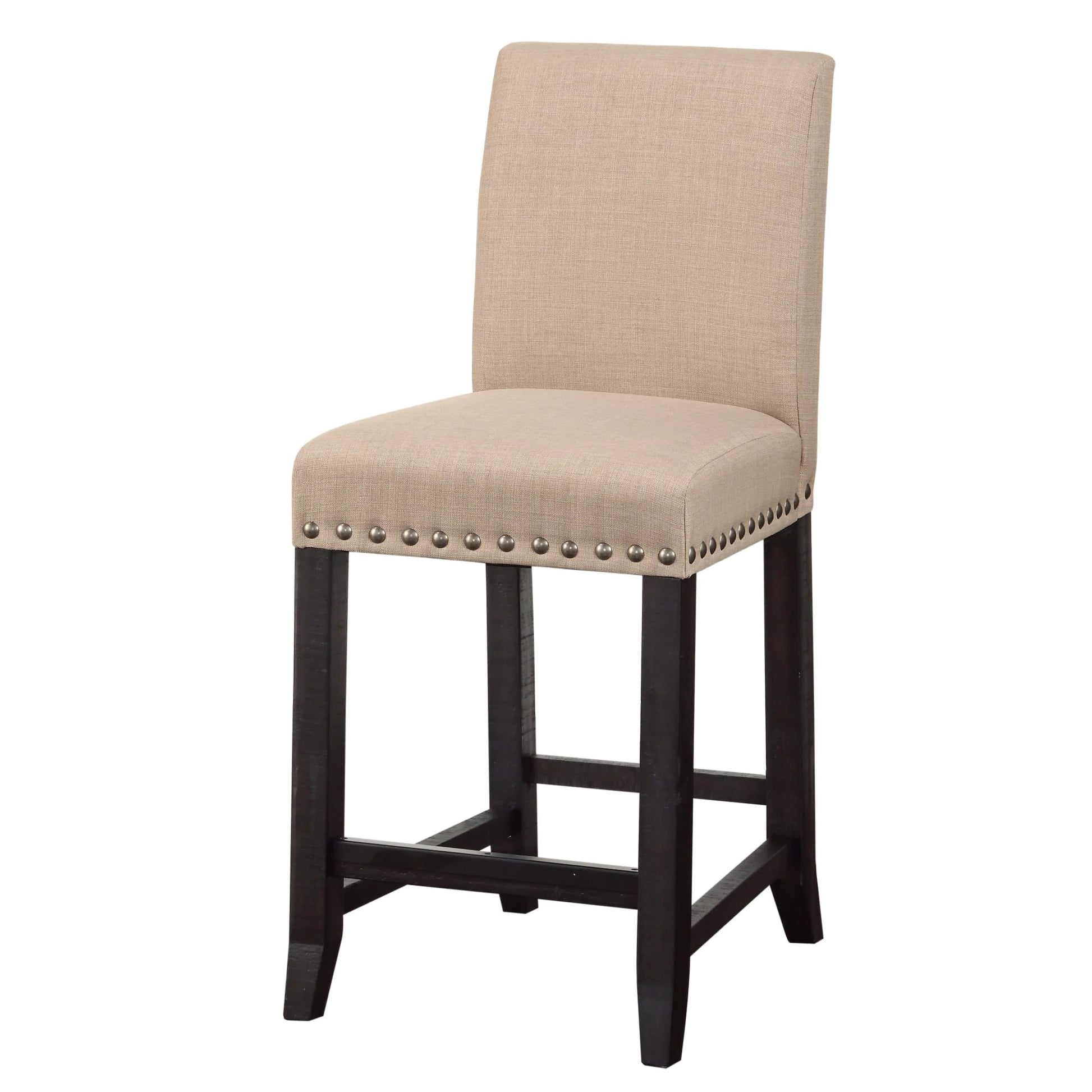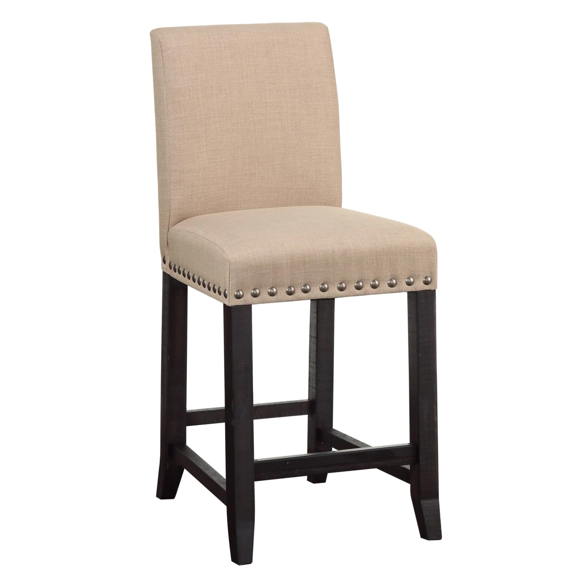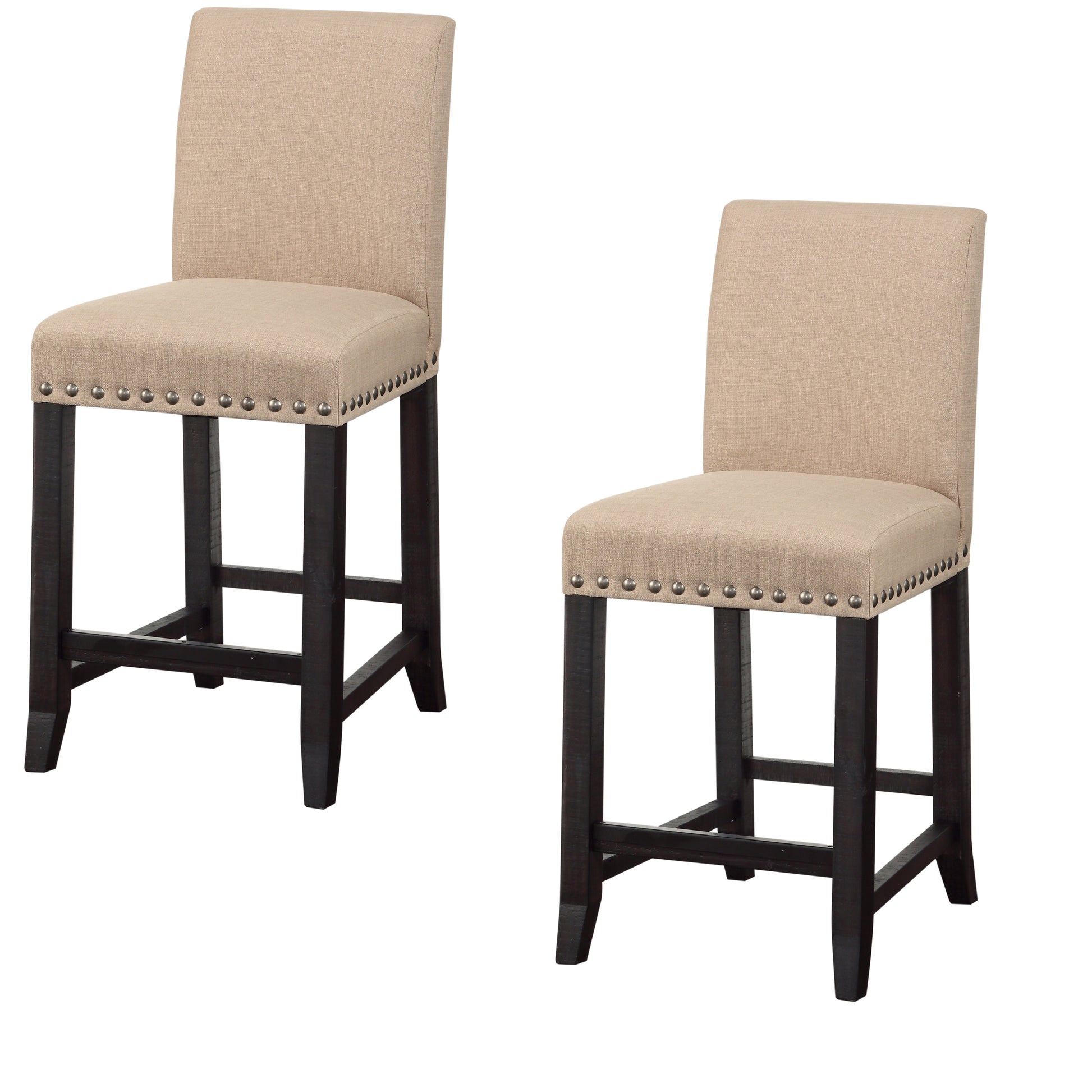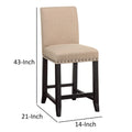 Fabric Upholstered Wooden Counter Height Stool With Nail Head Trim, Set Of 2, Brown Brown Wood Fabric