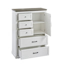 Farmhouse 5 Drawer Dresser For Bedroom, Tall Chest Of Drawers, Chest Of Drawers Organizer Storage,Wood Rustic Bedroom Dresser For Closet, Living Room, Hallway, White. White Gray Particle Board Mdf