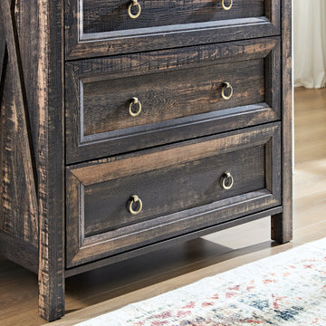 Farmhouse 5 Drawers Dresser Chests For Bedroom, Wood Rustic Tall Chest Of Drawers, Dressers Organizer For Bedroom, Living Room, Hallway, Dark Rustic Oak Dark Oak Mdf