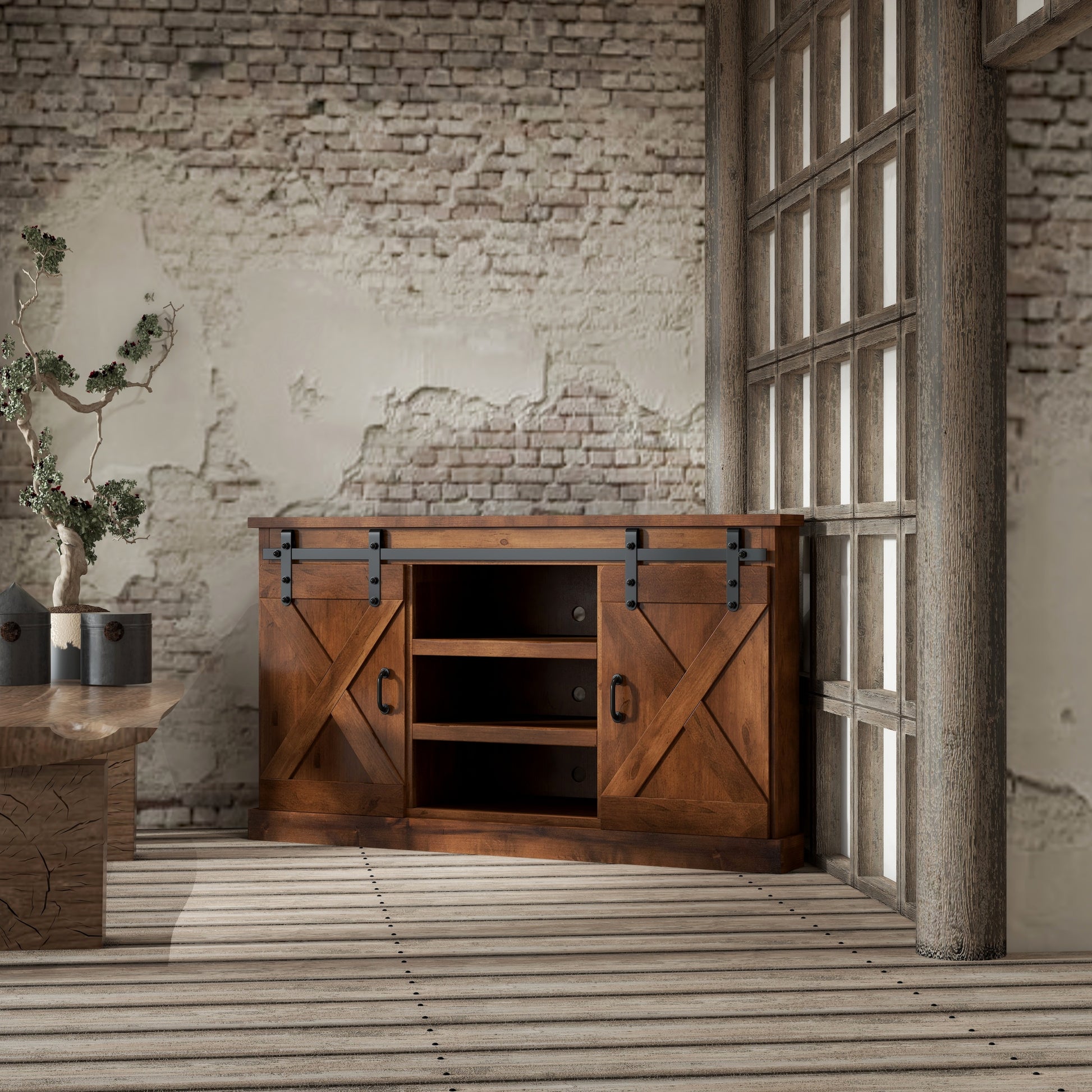 Farmhouse 56 Inch Corner Tv Stand For Tvs Up To 60 Inches, No Assembly Required, Aged Whiskey Finish Brown Brown Primary Living Space 50 59 Inches 60 69 Inches Farmhouse,Lodge,Rustic Alder 60 Inches Wood