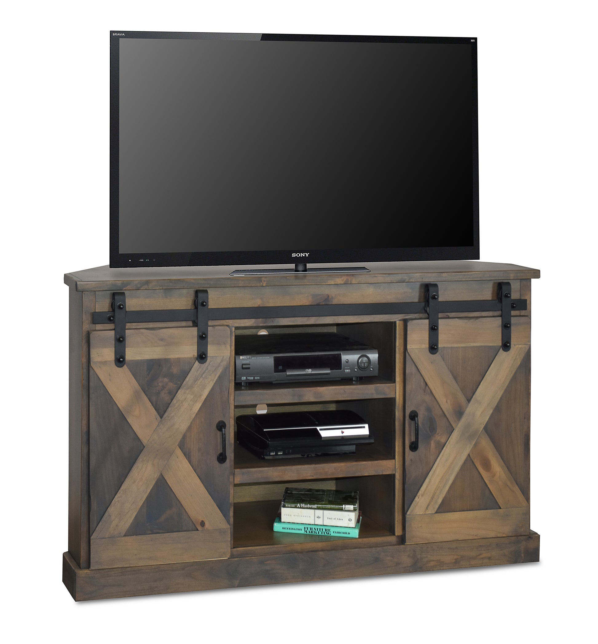 Farmhouse 56 Inch Corner Tv Stand For Tvs Up To 60 Inches, No Assembly Required, Barnwood Finish Brown Brown Primary Living Space 50 59 Inches 60 69 Inches Farmhouse,Lodge,Rustic Alder 60 Inches Wood