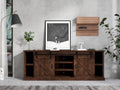 Farmhouse 85 Inch Tv Stand Console For Tvs Up To 95 Inches, No Assembly Required, Aged Whiskey Finish Brown Brown Primary Living Space 80 89 Inches 90 Inches Or Larger Farmhouse,Lodge,Rustic Alder 85 Inches Wood