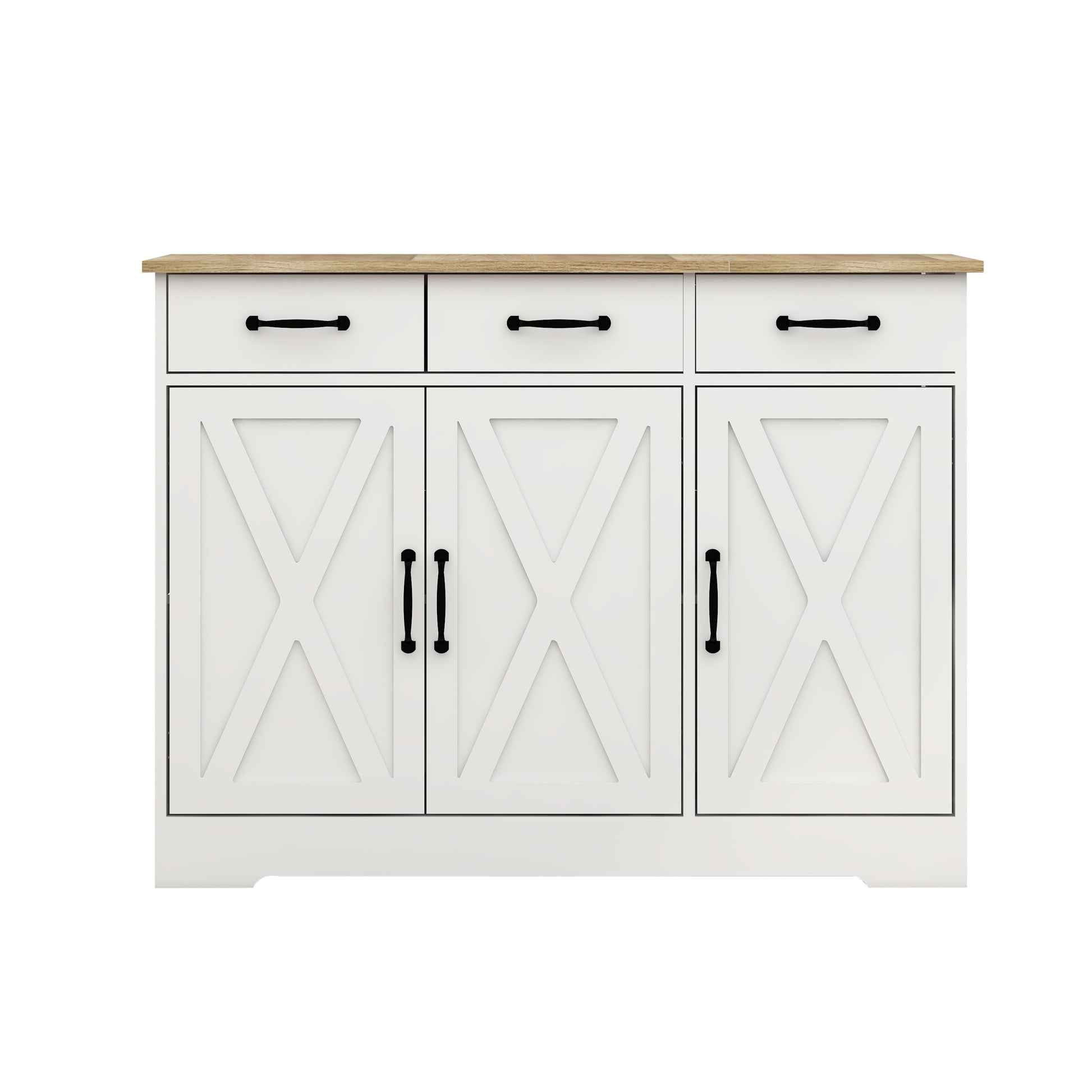 Farmhouse Buffet Cabinet Storage Sideboard With 3 Drawers And 3 Doors For Dining Living Room Kitchen Cupboard White White Mdf