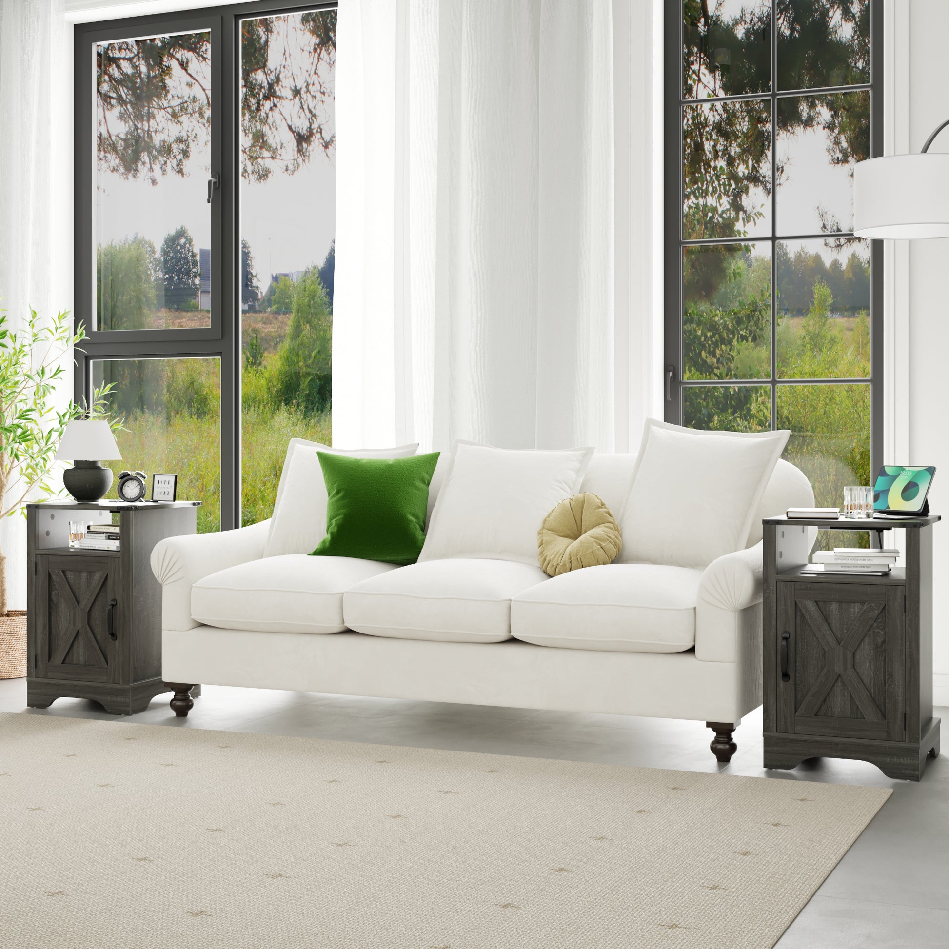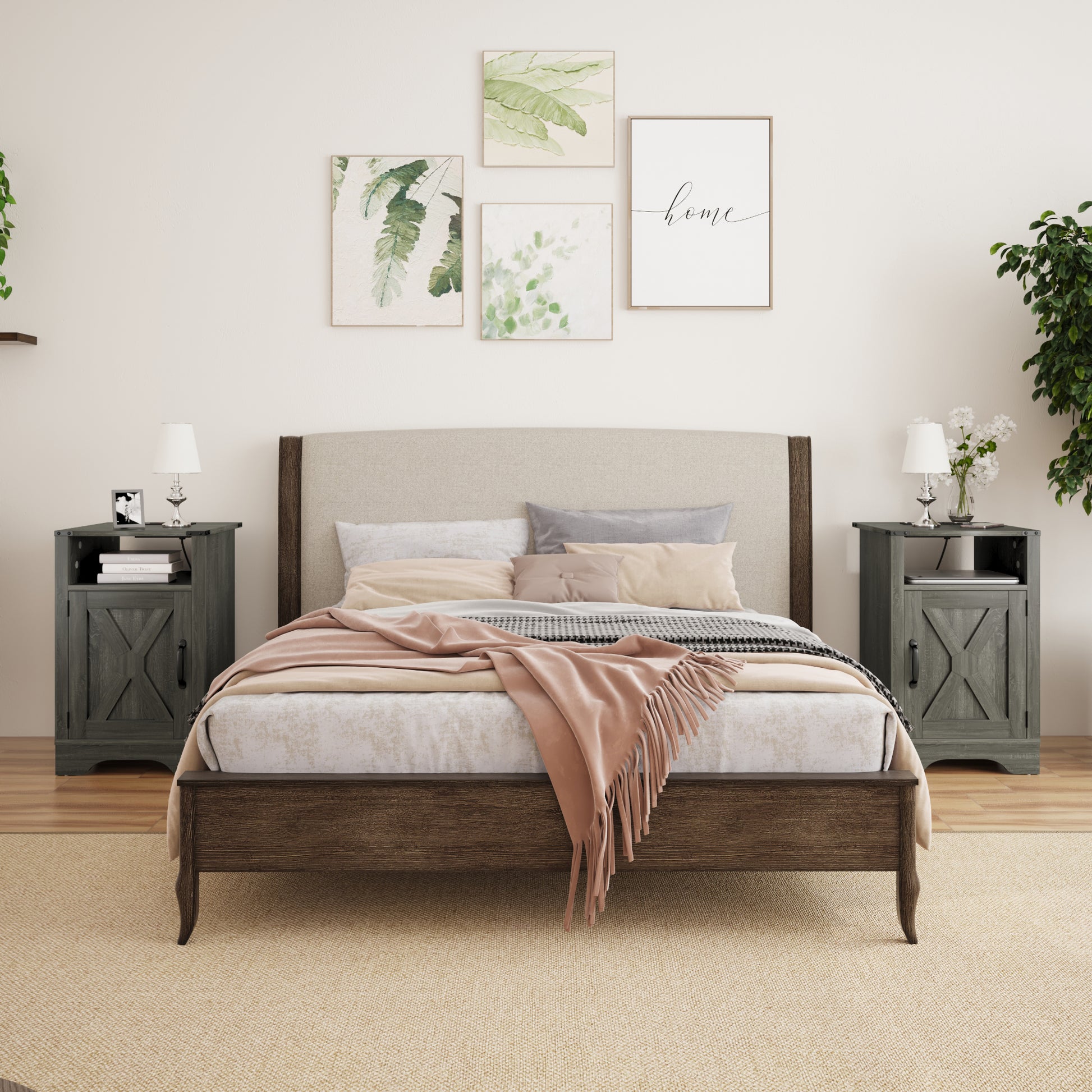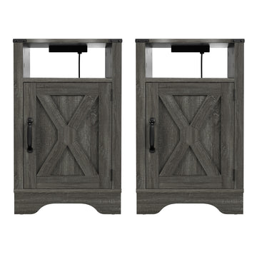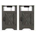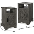 Farmhouse Nightstand Side Table, Wooden Rustic End Table, Tall Bedside Table With Electrical Outlets Charging Station 2 Sets Dark Gray Dark Grey Engineered Wood