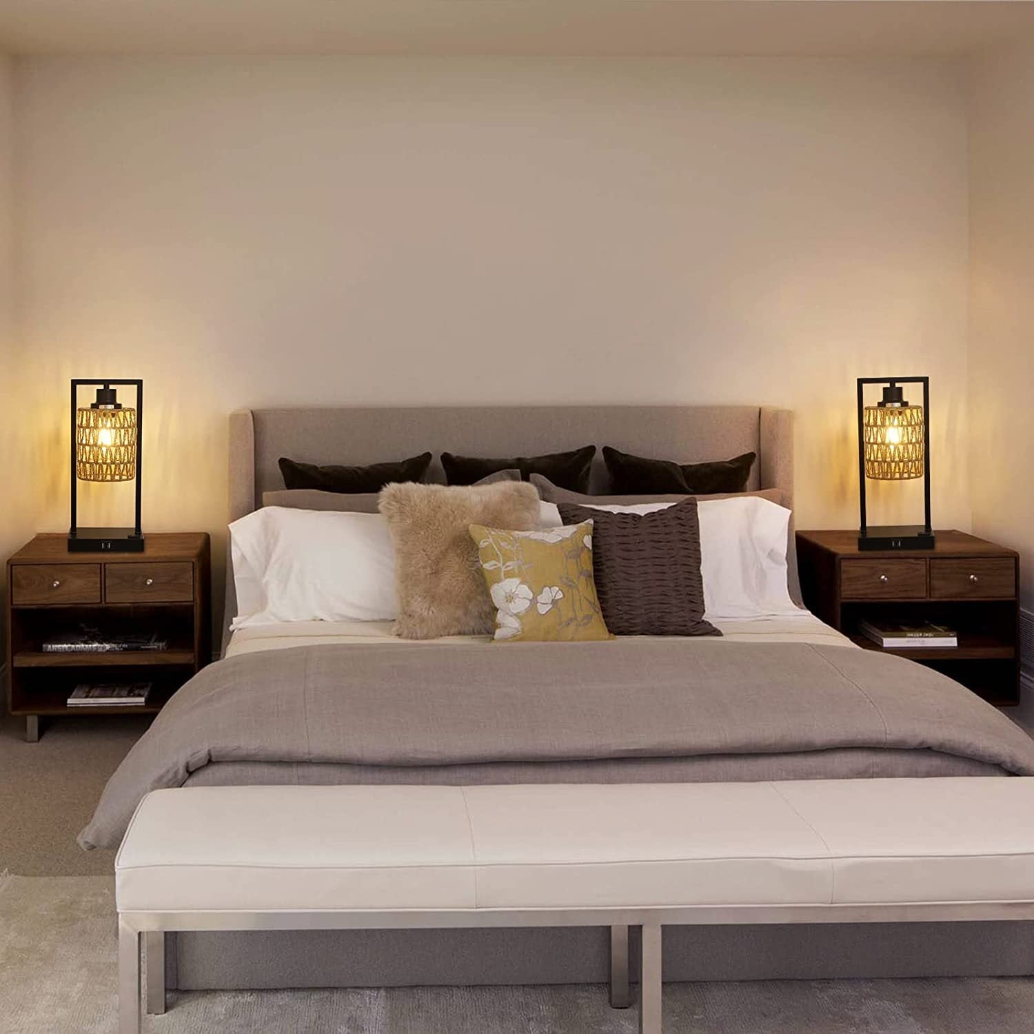 Farmhouse Rattan Table Lamps Set Of 2 Black Brown Rattan