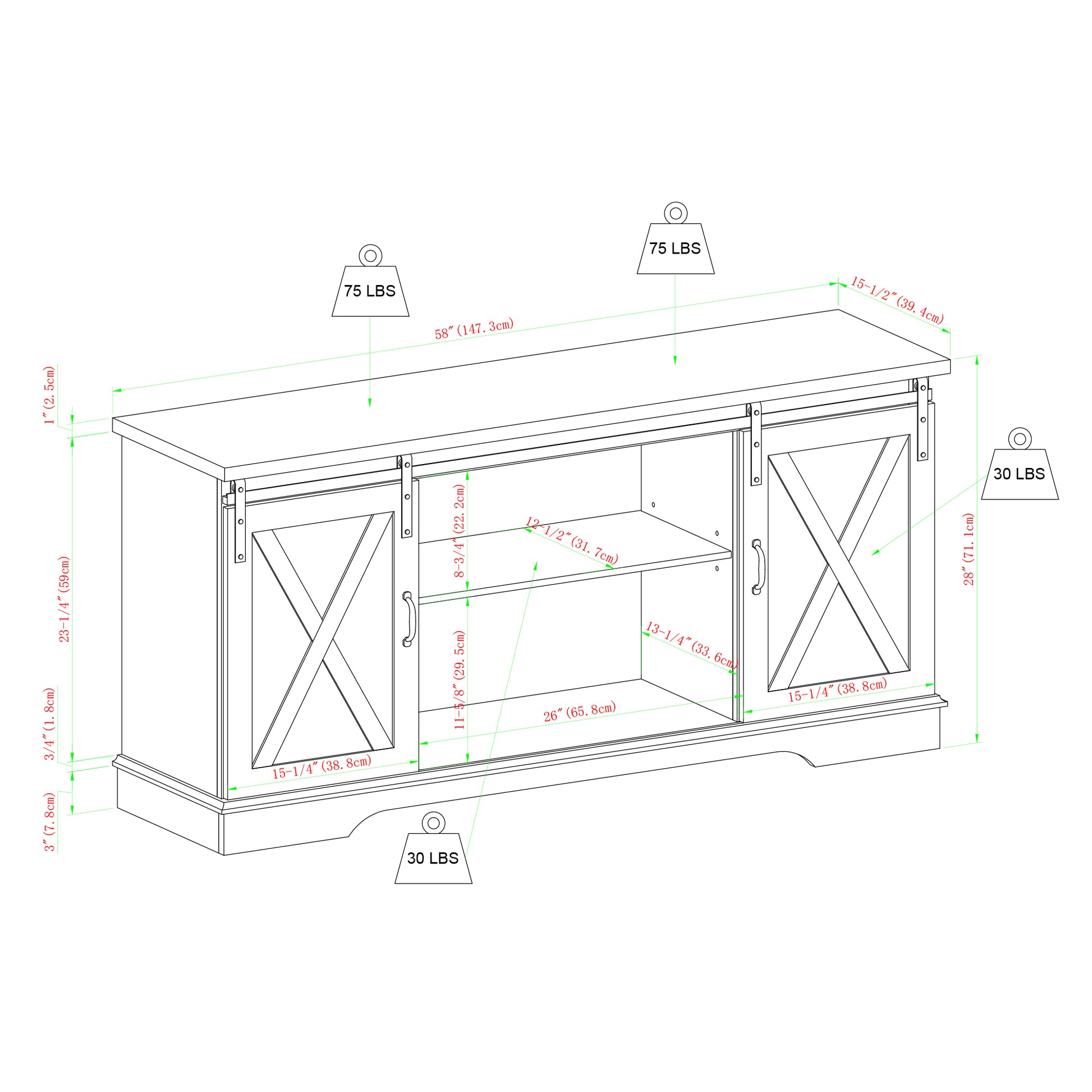 Farmhouse Sliding X Barn Door 58" Tv Stand For 65" Tvs Grey Wash Gray Wash Mdf