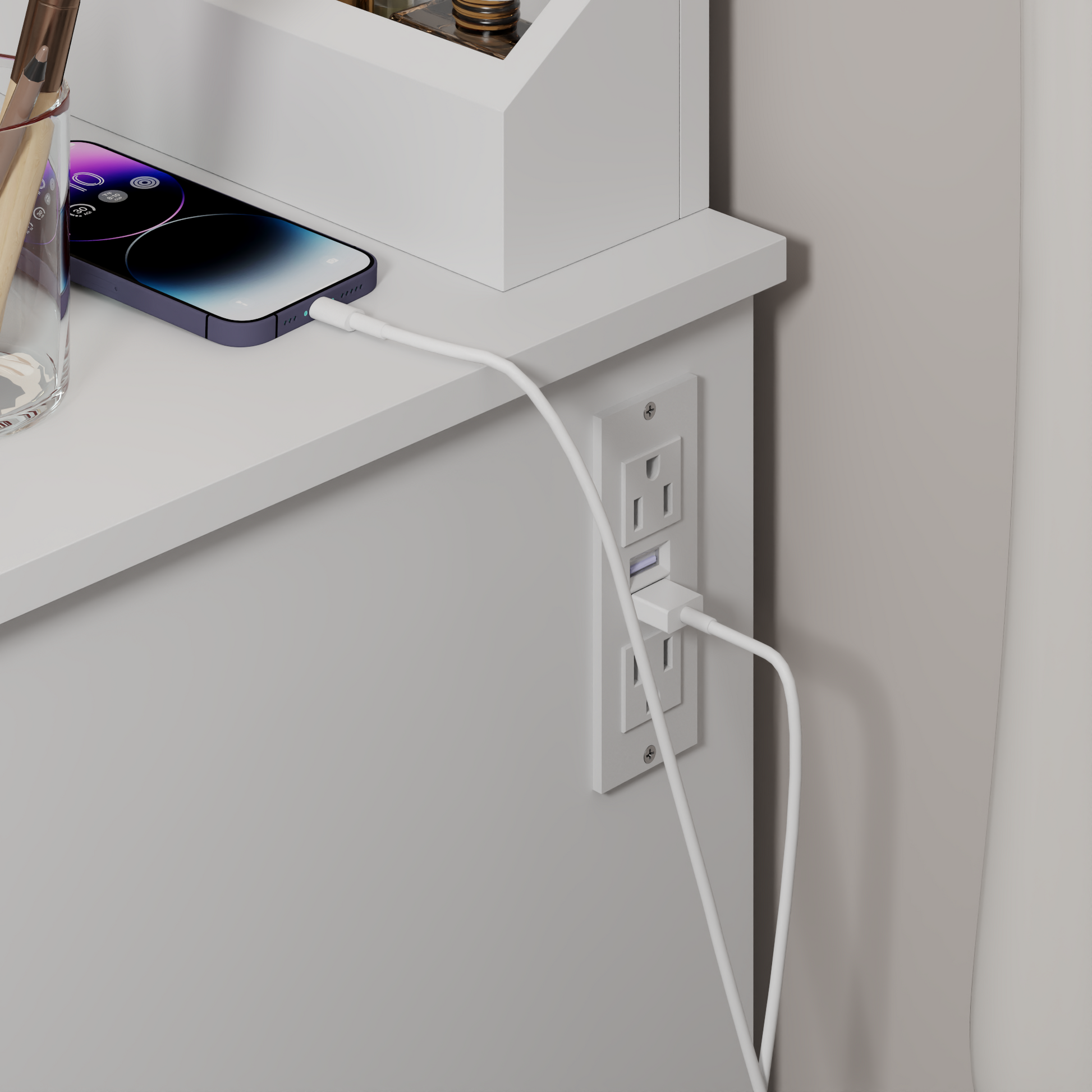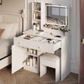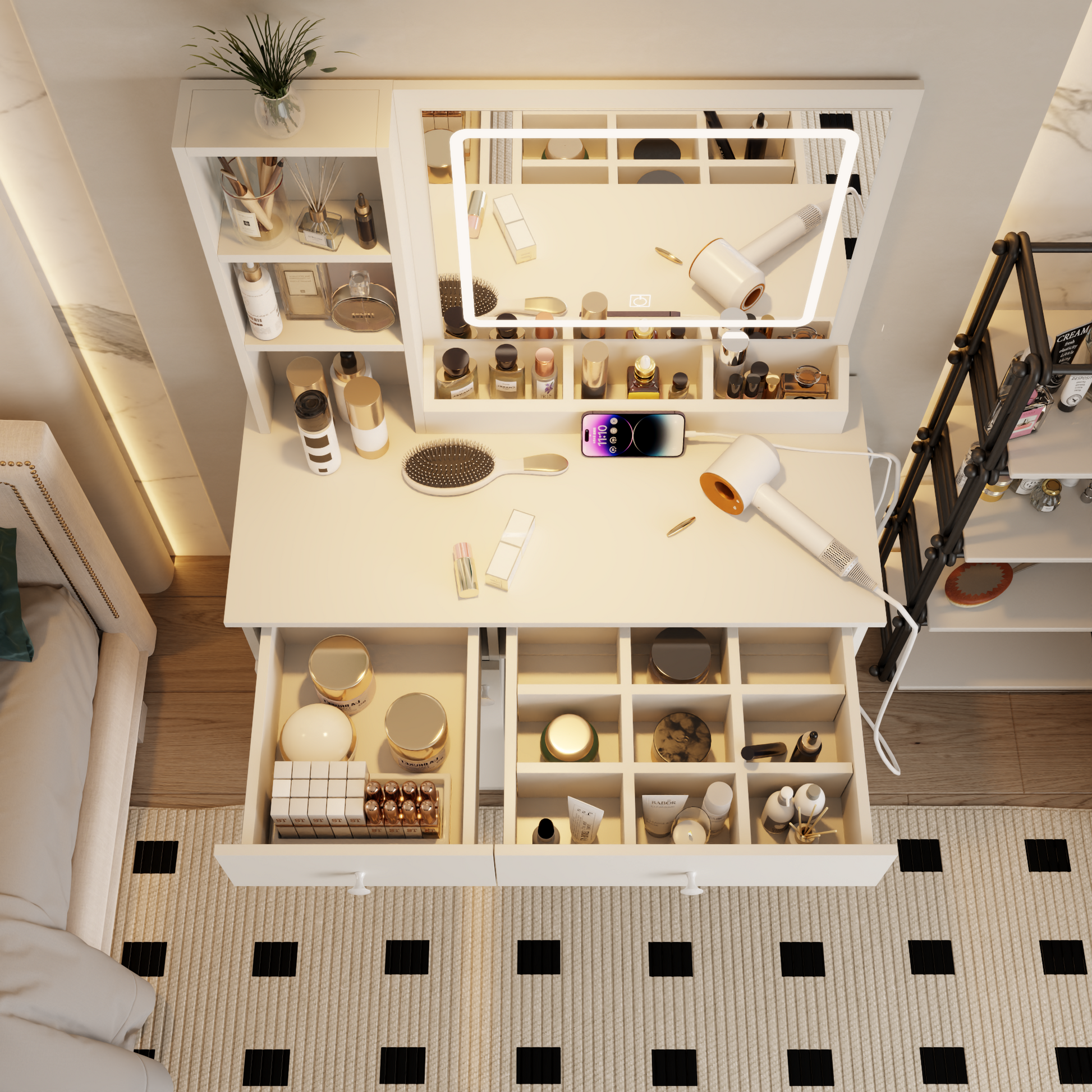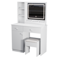 Fashion Vanity Desk With Mirror And Lights For Makeup, Vanity Mirror With Lights And Table Set With 3 Color Lighting Brightness Adjustable, 2 Big Drawers, White Color White Mdf
