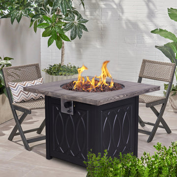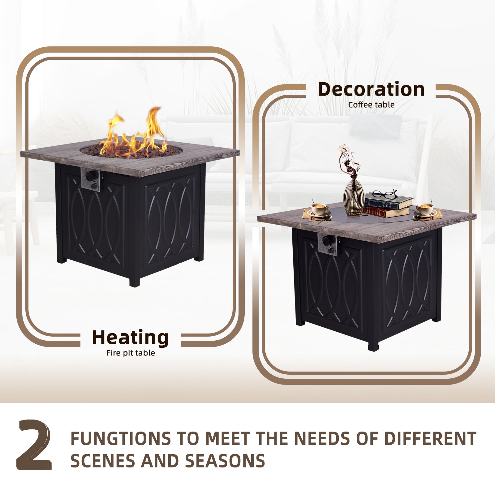 Faux Woodgrain Table Top And Steel Base Propane Outdoor Fire Pit Table With Lid Black Garden & Outdoor American Design Concrete,Metal