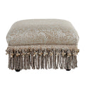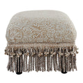 Fiona Accent Footstool Ottoman, Silvery Blue Beige Paisley Jacquard Beige Foam Fabric