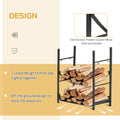 Firewood Rack With Fireplace Tools, Indoor Outdoor Firewood Holder, Flat Bottom With 2 Tiers For Fireplace, Wood Stove, Hearth Or Fire Pit, Black Black Steel