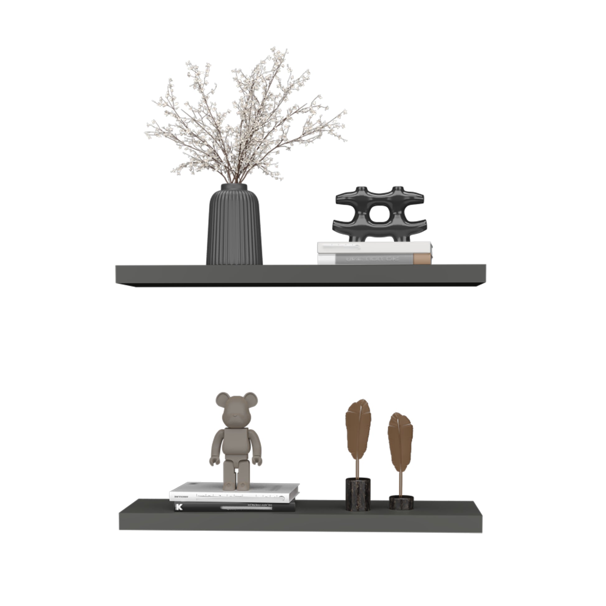Floating Shelves 1.50" H, 2 Shelves, Matt Gray Grey Solid Wood Mdf Engineered Wood