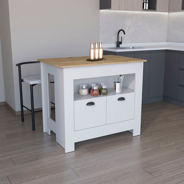 Floyd Kitchen Island 35" Hwhit 2 Doors, 3 Shelves, White Macadamia White Solid Wood Mdf Engineered Wood