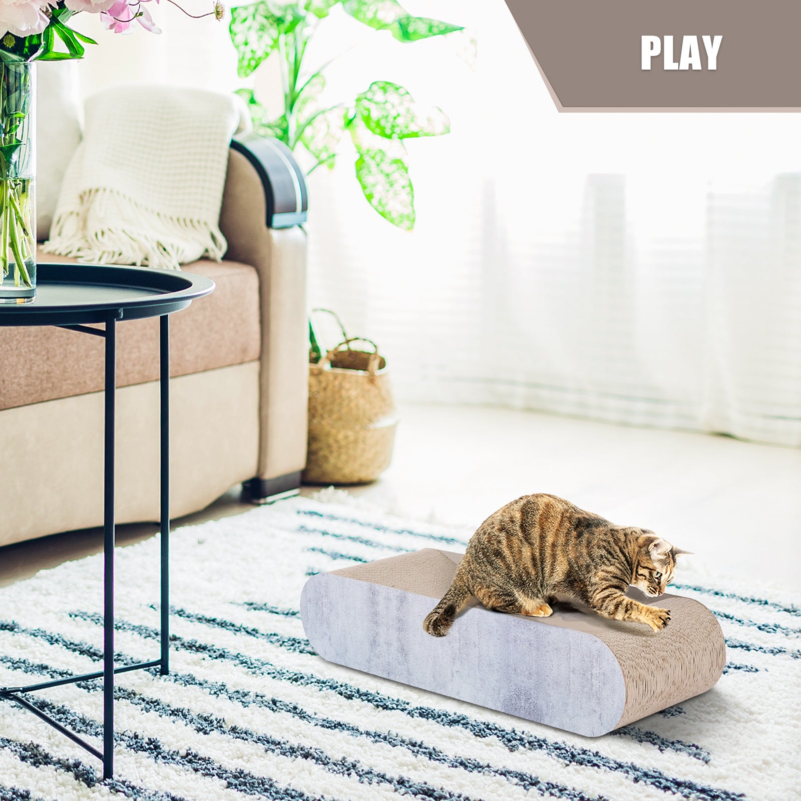 Fluffydream Cat Scratcher, Cardboard Lounge Bed, Bone Shape Design, Recyclable Corrugated Scratching Pad, Stable And Durable, Furniture Protector, Reversible, Grey Grey Plywood