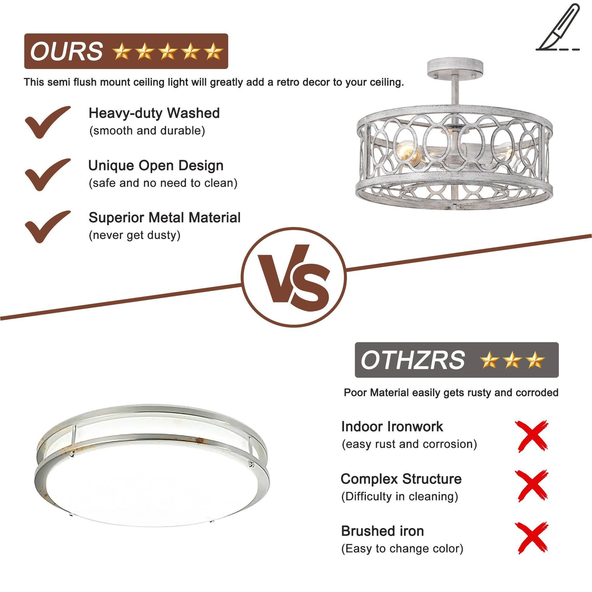 Flush Mount Ceiling Light Fixture Ceiling Mount,3 Light E26 No Include Bulb 18.11"Farmhouse Chandelier Modern Pendant Light Fixtures For Kitchen Lighting Fixture Matte White American Design,Luxury,Modern,Vintage Iron Metal