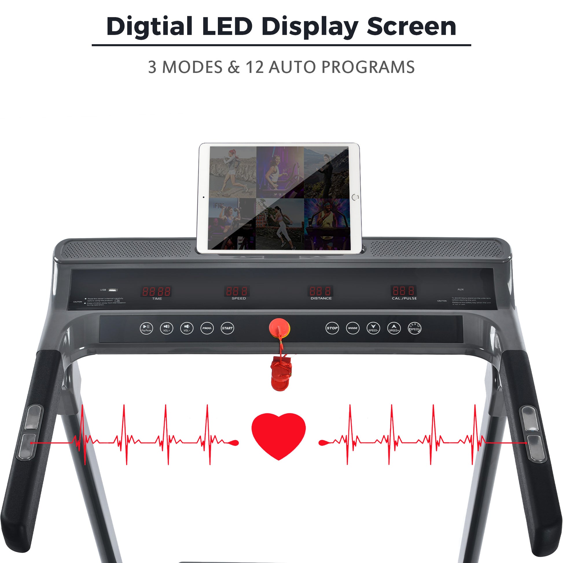Folding Electric 3.5Hp Treadmill Medium Running Machine Motorised Gym 330Lb,Portable Compact Treadmill Foldable For Home Gym Fitness Workout Jogging Walking,Electric Motorized Power 14Km H Grey Metal