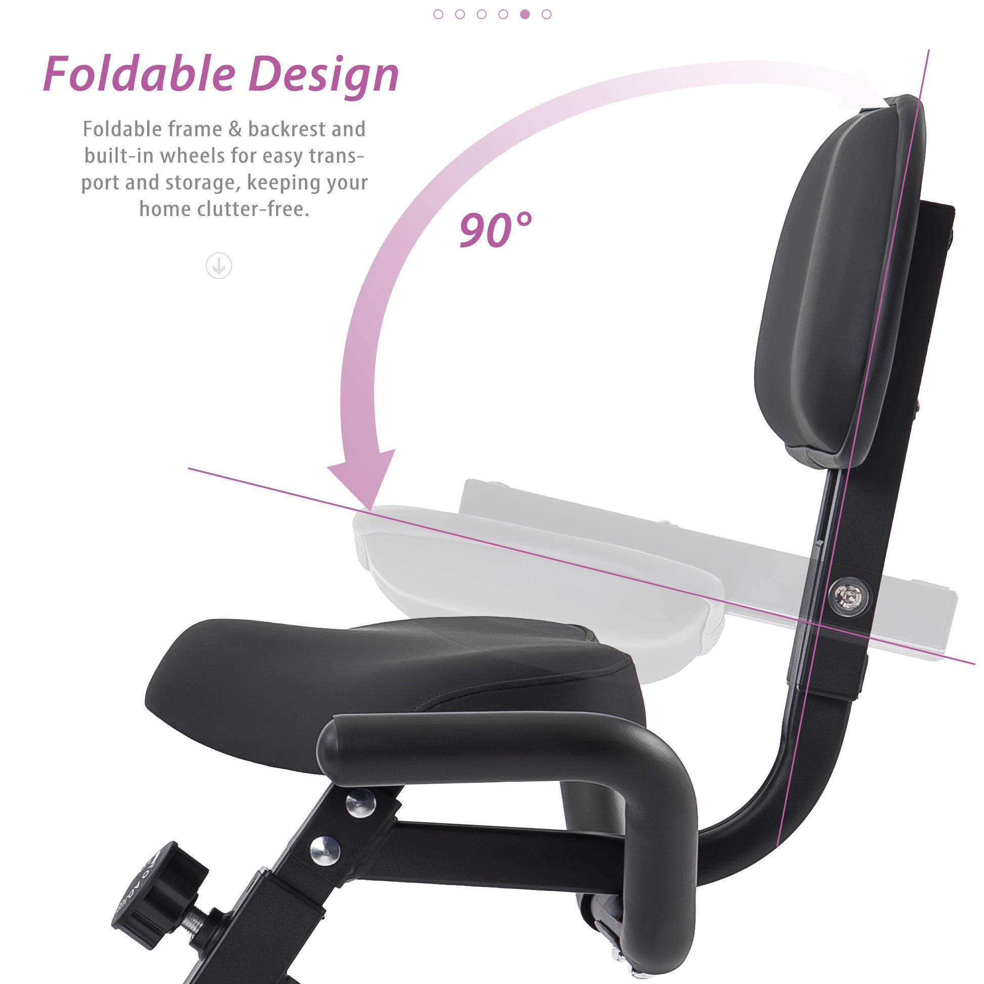 Folding Exercise Bike, Fitness Upright And Recumbent X Bike With 16 Level Adjustable Resistance, Arm Bands And Backrest Pink Metal