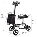 Folding Knee Scooter, Steerable Leg Walker With Bag And Dual Braking System, Crutch Alternative For Foot Injuries Ankles Surgery, Black Black Metal