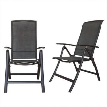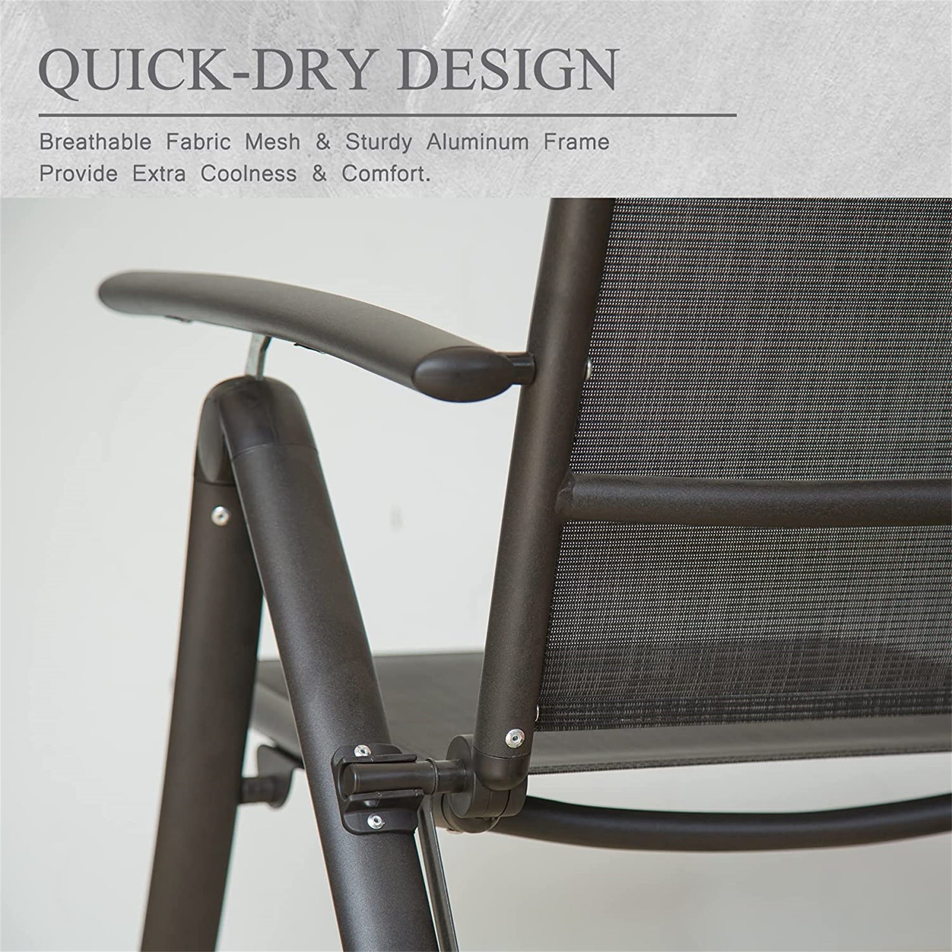 Folding Patio Chairs Set Of 2, Aluminium Frame Reclining Sling Lawn Chairs With Adjustable High Backrest, Patio Dining Chairs For Outdoor, Camping,Porch,Balcony Textilene Fabric,2 Chairs Dark Gray