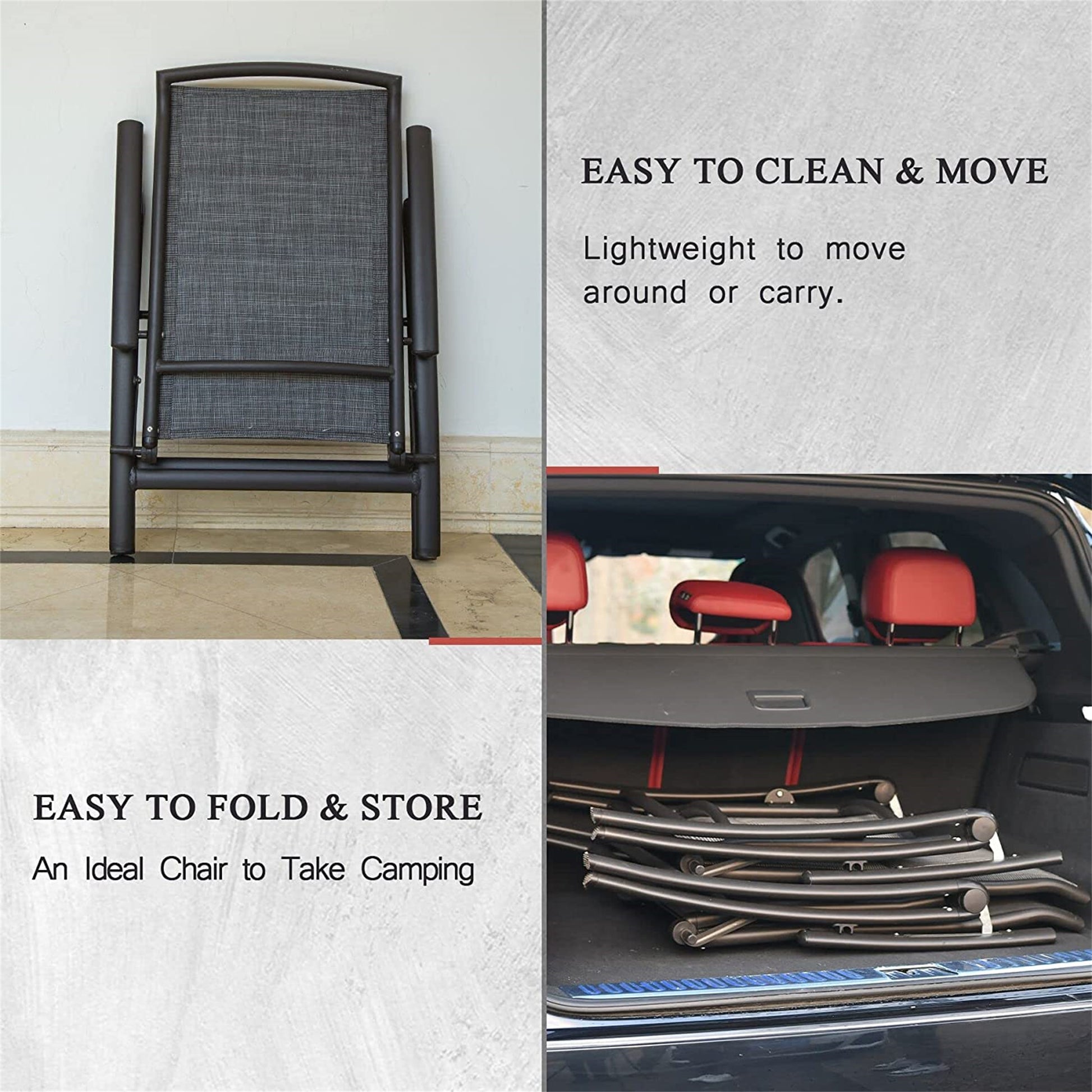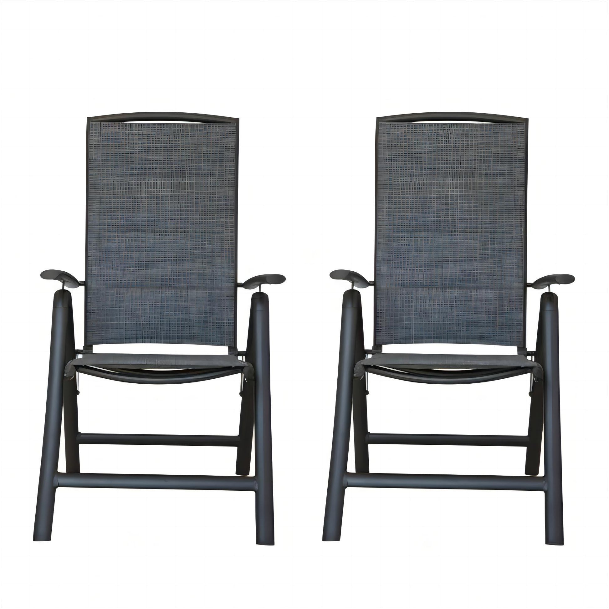 Folding Patio Chairs Set Of 2, Aluminium Frame Reclining Sling Lawn Chairs With Adjustable High Backrest, Patio Dining Chairs For Outdoor, Camping,Porch Double Layered Textilene Fabric, 2 Chairs Dark Gray Aluminium