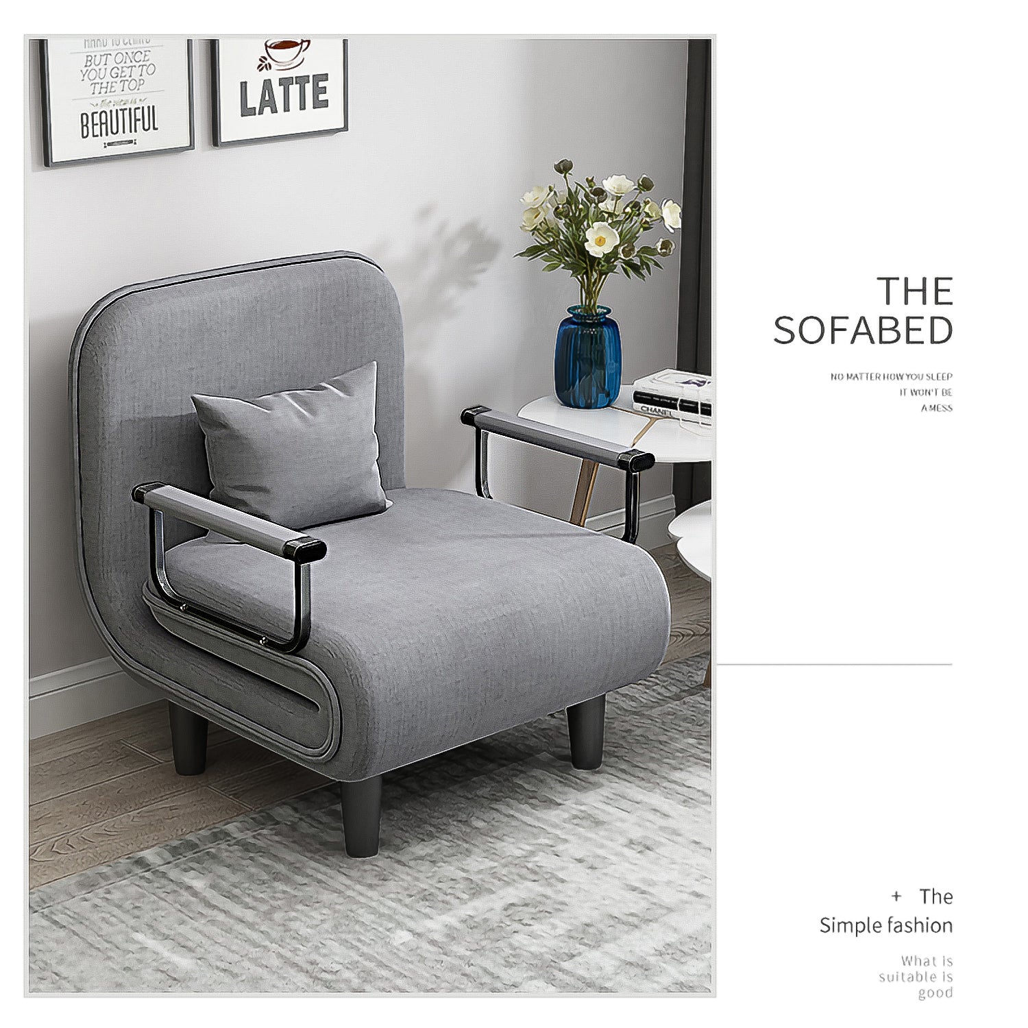 Folding Sofa Chairgrey Blue,Gray Fabric Metal