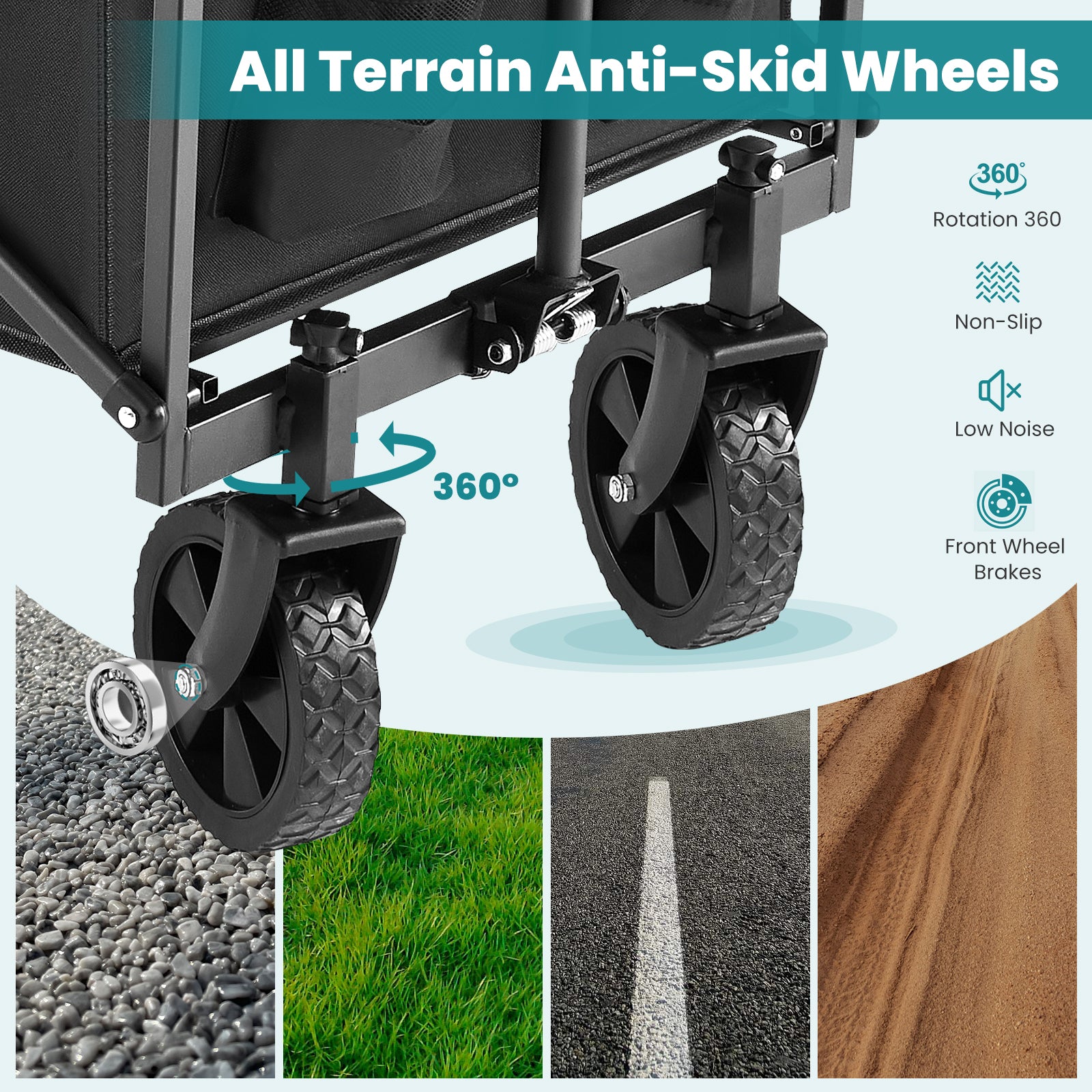 Folding Wagon Cart With Wheels, Foldable Grocery Cart,Small, Black Black Iron
