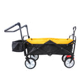 Folding Wagon Collapsible Outdoor Utility Wagon, Heavy Duty Folding Garden Portable Hand Cart, Drink Holder, Adjustable Handles Yellow Steel