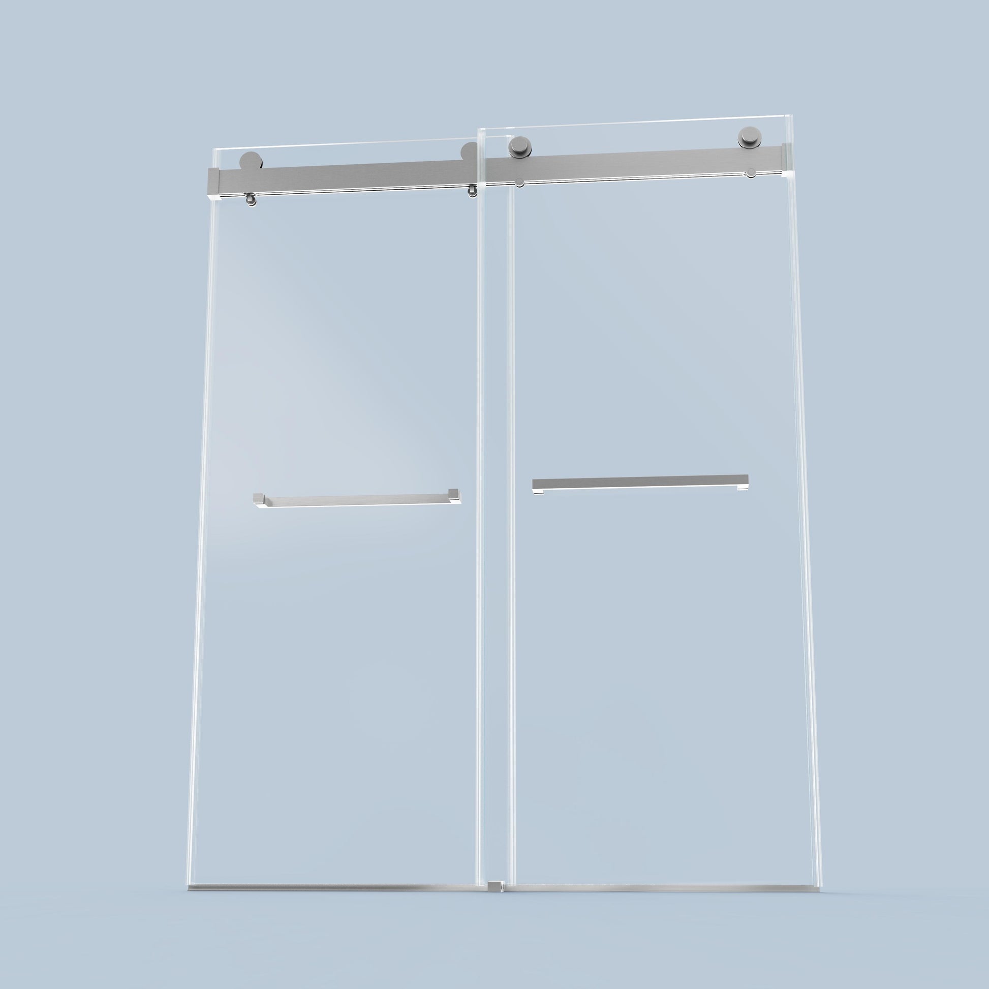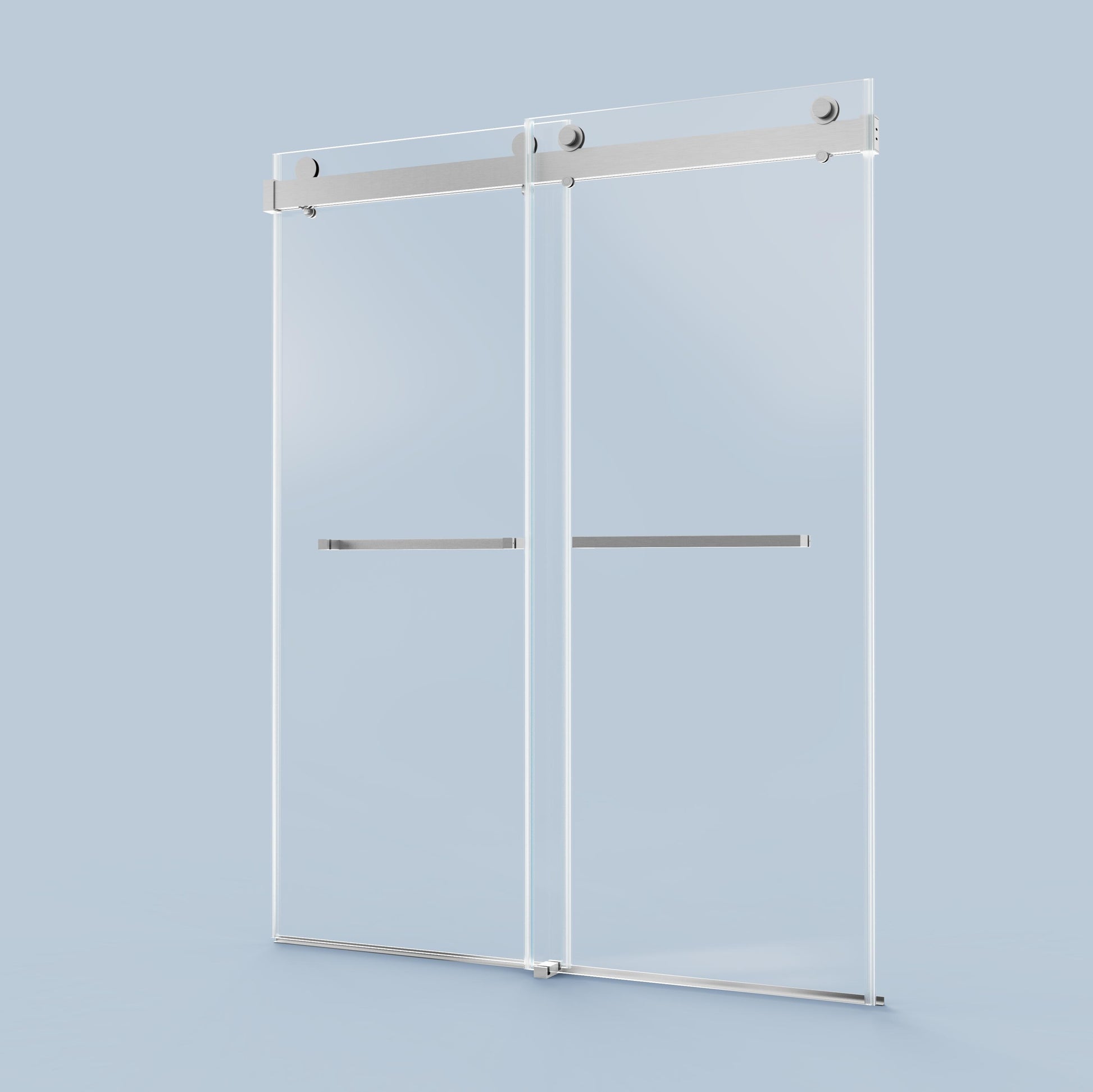 For 56" 60"W*76"H Frameless Double Sliding Soft Close Shower Door In Brushed Nickel, 3 8 Inches 10Mm Thick Sgcc Tempered Glass Door No Glass Panels Included, Only Hardware Profiles And Fittings Brushed Nickel Metal