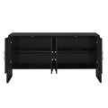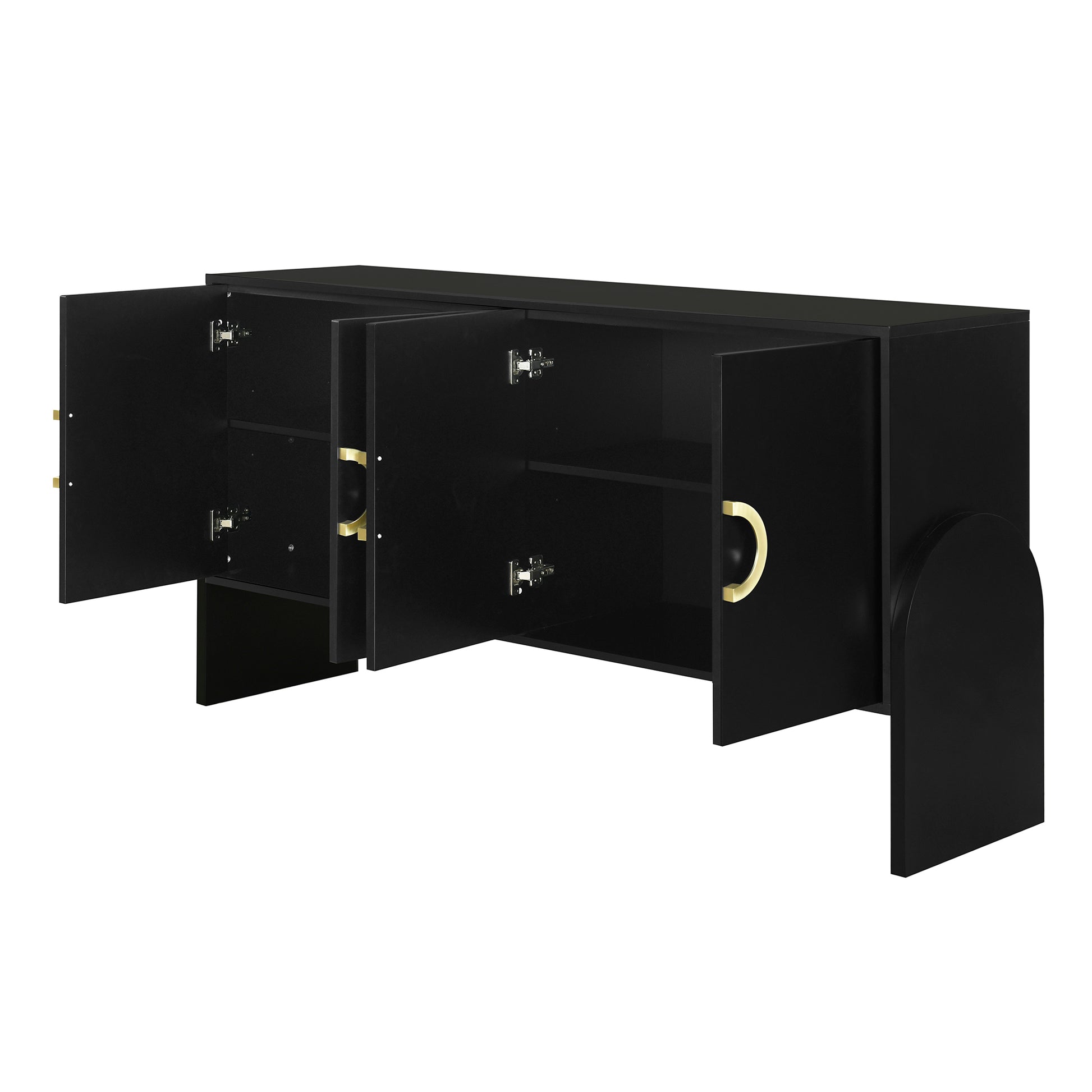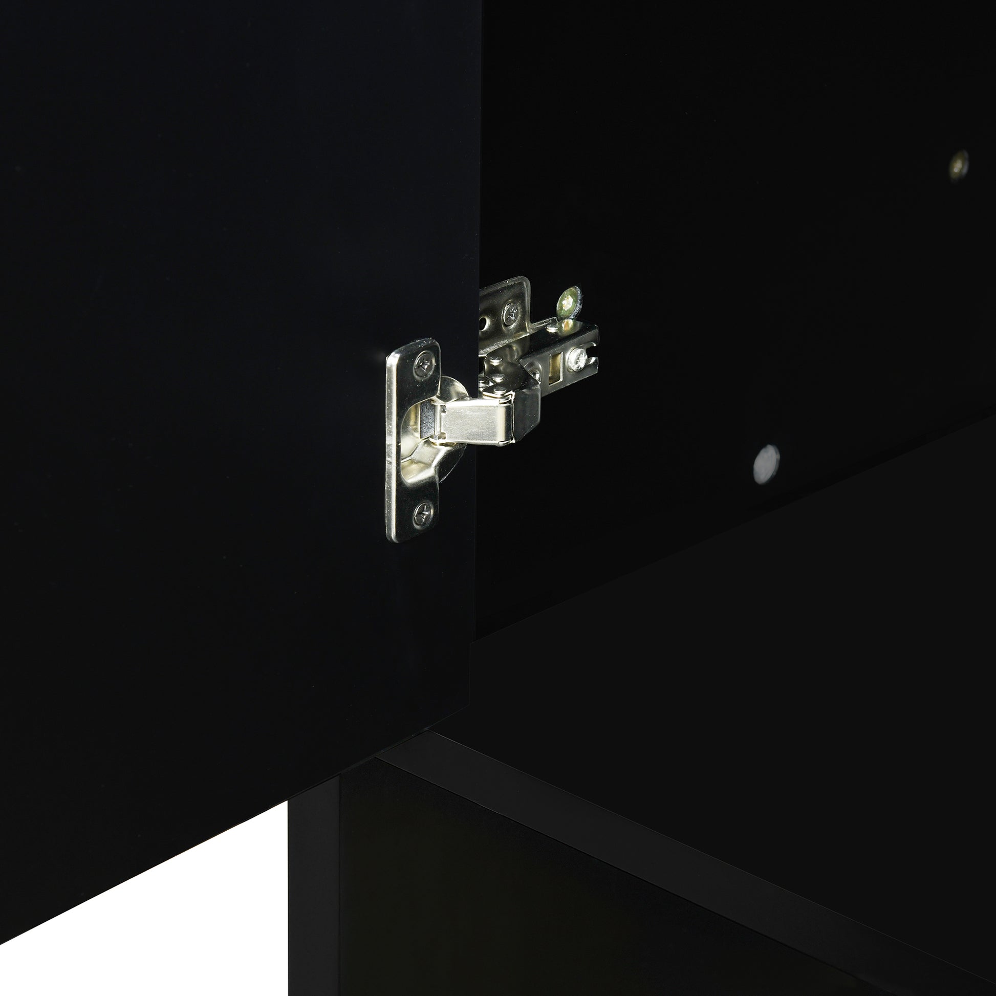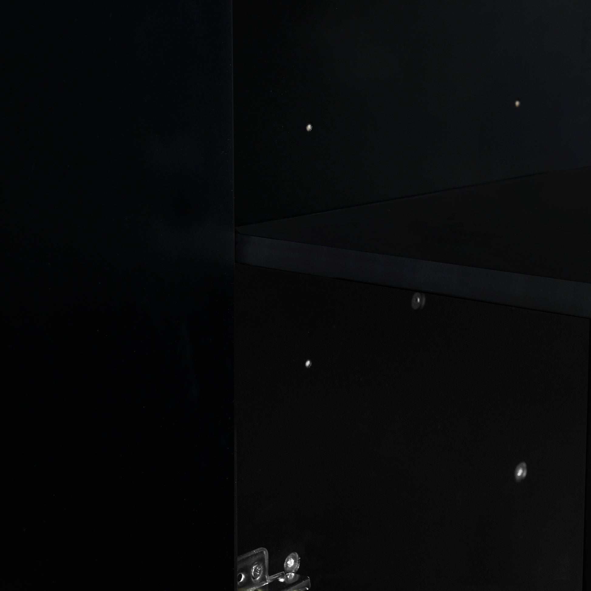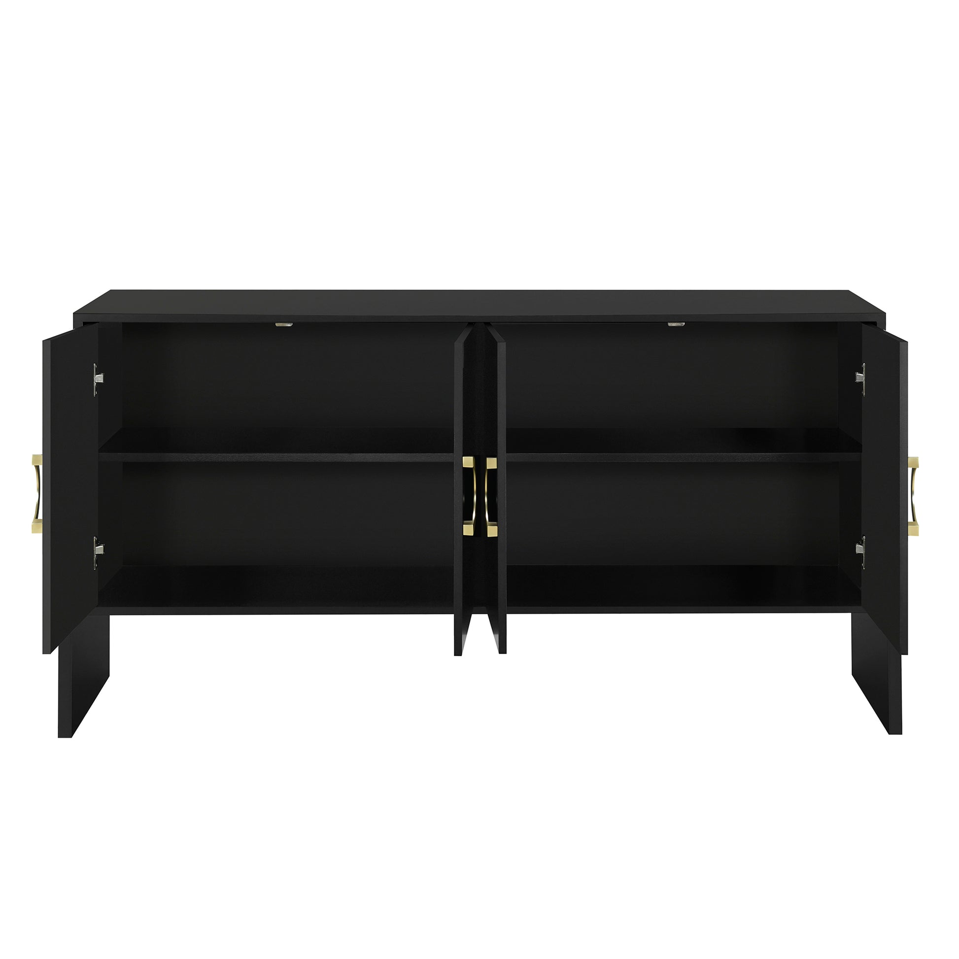 Four Door Metal Handle Storage Cabinet, Suitable For Study, Living Room, Adjustable Shelf Black Solid Wood Mdf